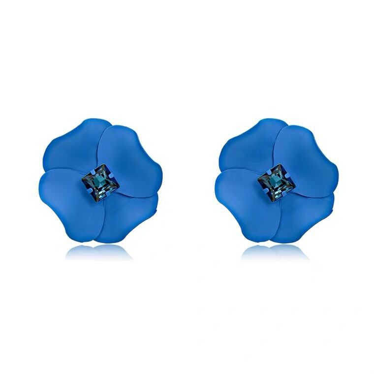Blue Flower Earrings Exaggerated High-end Light Luxury Three-dimensional Unique Earrings Design Fashion All-match Distinctive Earrings