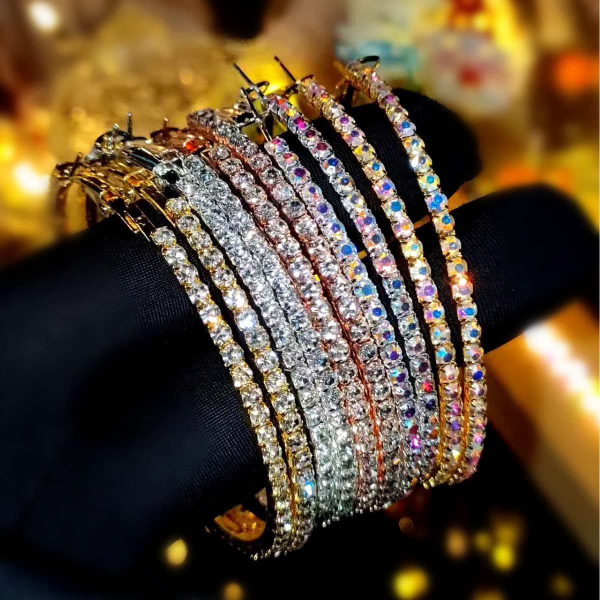 2-4-6-8-10cm Oversized Earrings Exaggerated Earrings European and American Round Rhinestone Geometric Hoop Earrings for Women Cross-Border