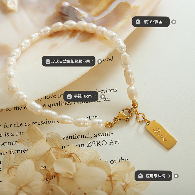 English LOVE love square brand lettering pearl bracelet female titanium steel PVD vacuum gold-plated jewelry jewelry jewelry manufacturers wholesale