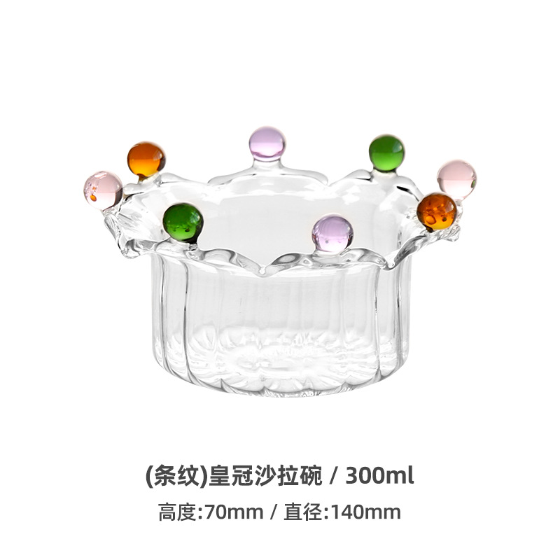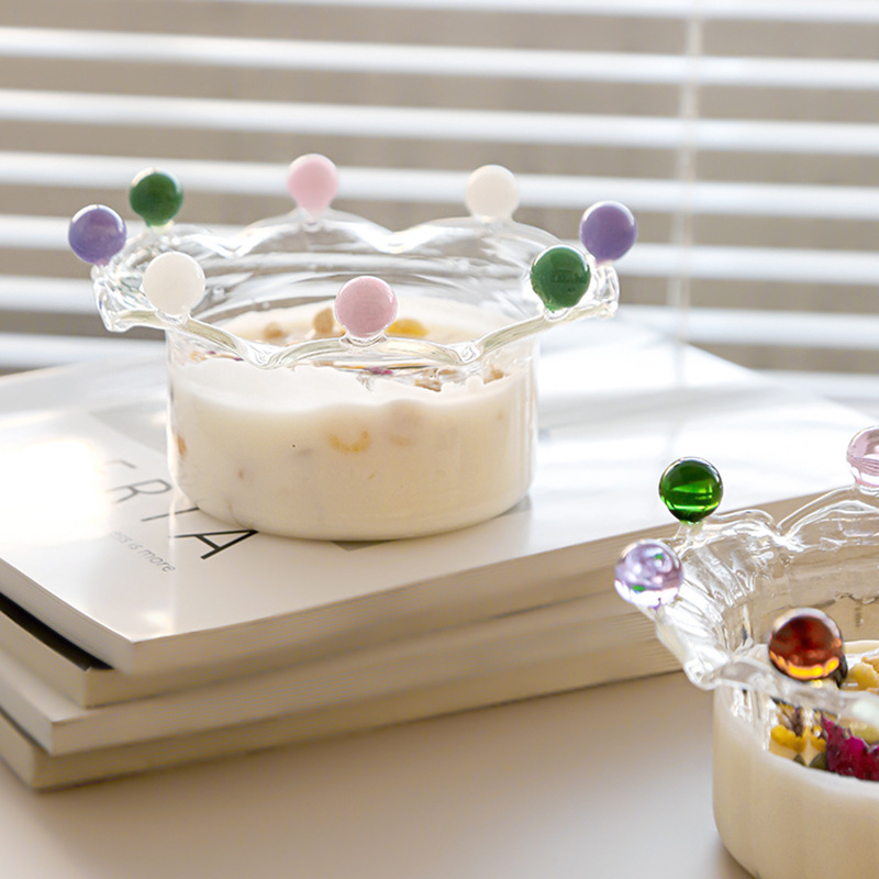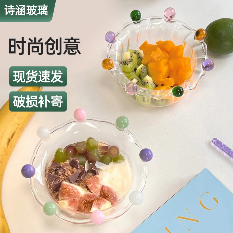 Fashion Creative Glass Bowl Yogurt Bowl Oatmeal Fruit Dessert Bowl Hand-blown Dew Jewelry Bowl Colorful Beads Fruit Plate