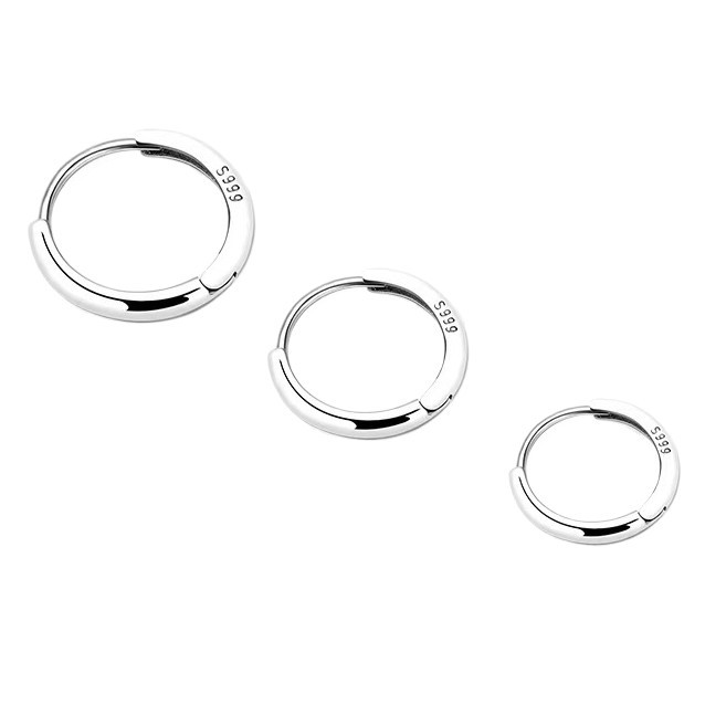 S999 Pure Silver Plain Hoop Earrings for Women, Minimalist Niche Design, Ins-Style Ear Cuffs, High-End Hollow Pure Silver Earrings