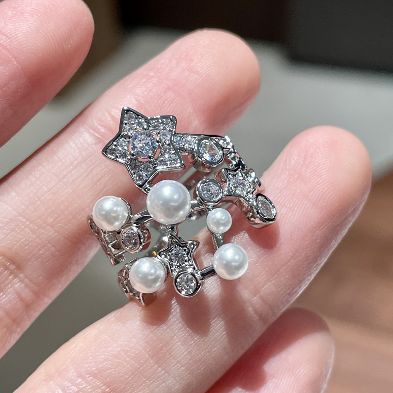 Color: 2503260 five-pointed star zircon pearl ring (real gold plated