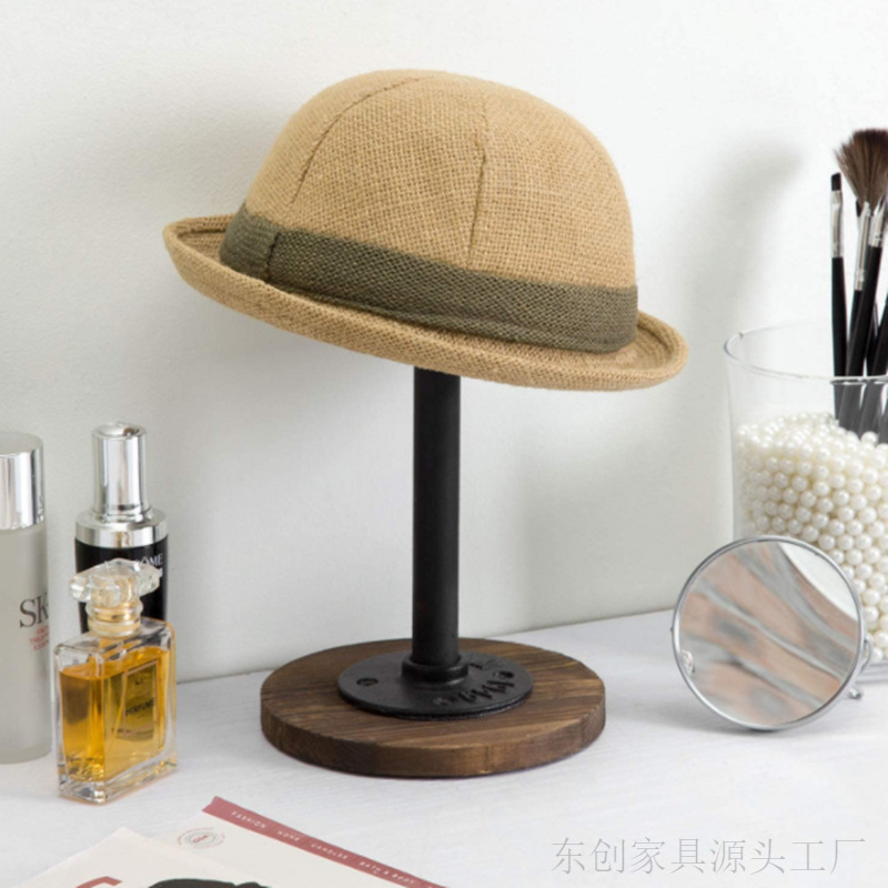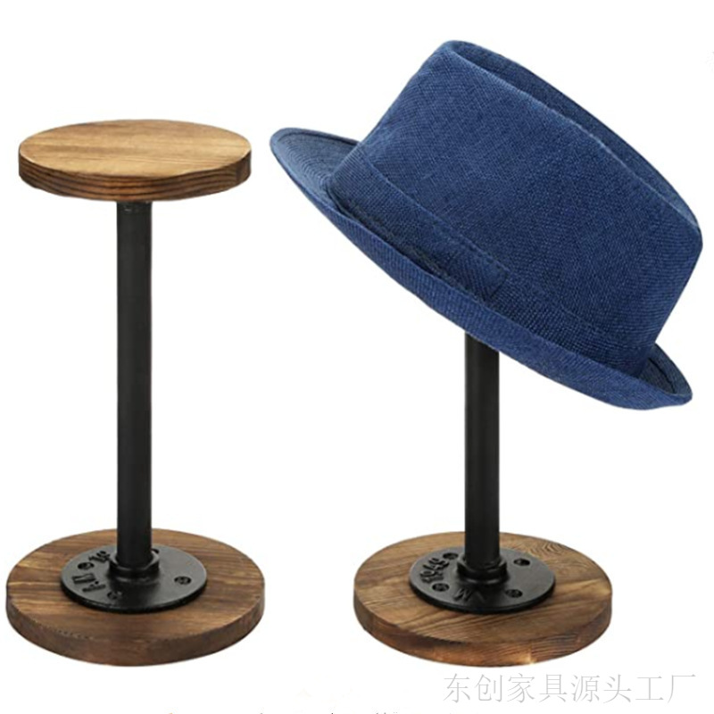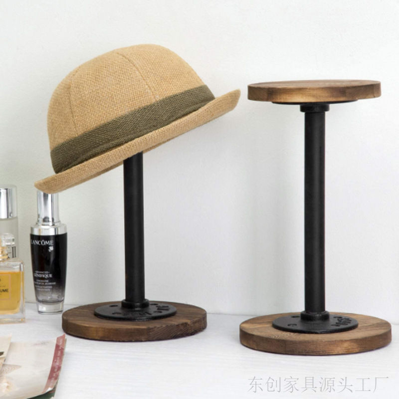 American country style industrial metal wooden hat stand shop countertop wig stand jewelry display stand