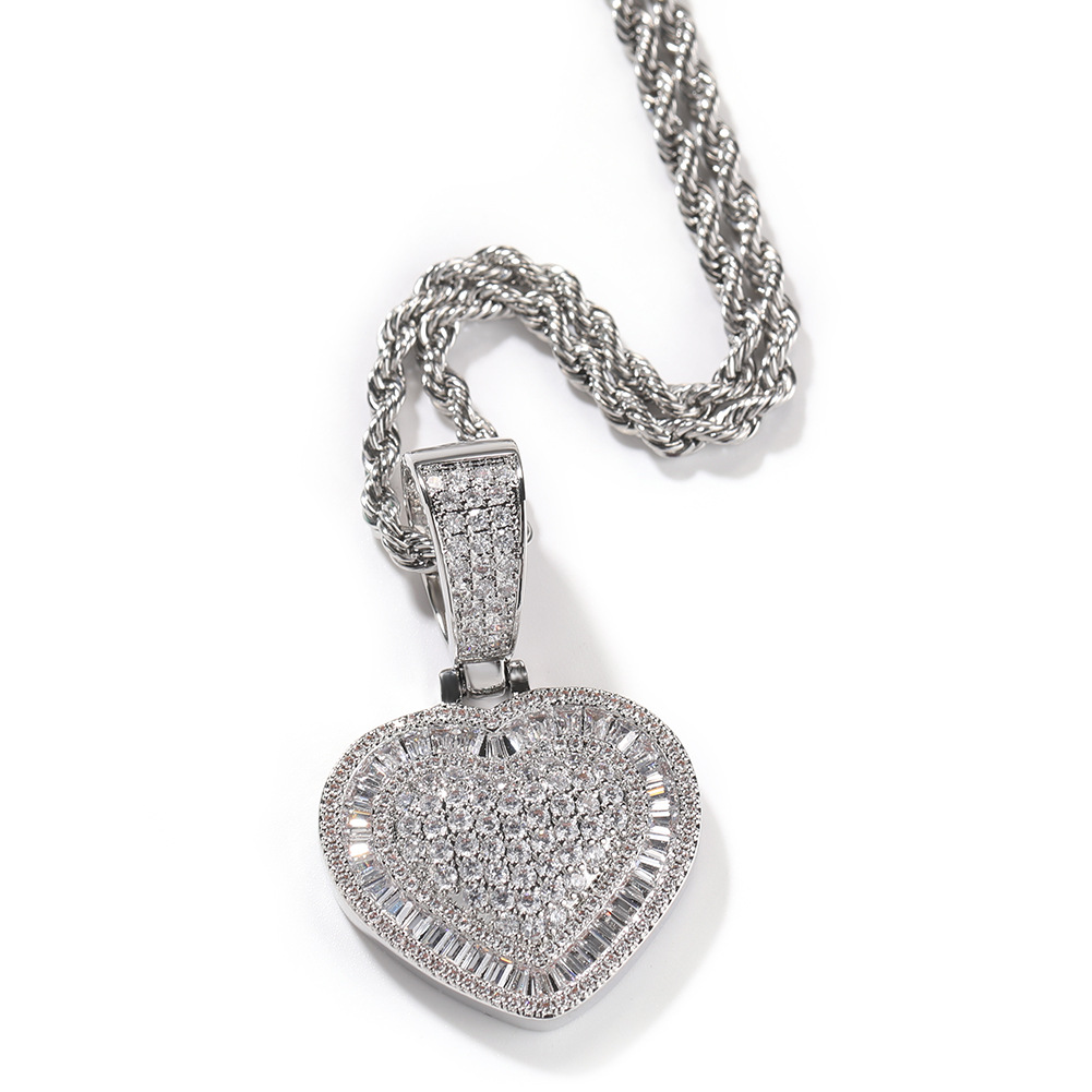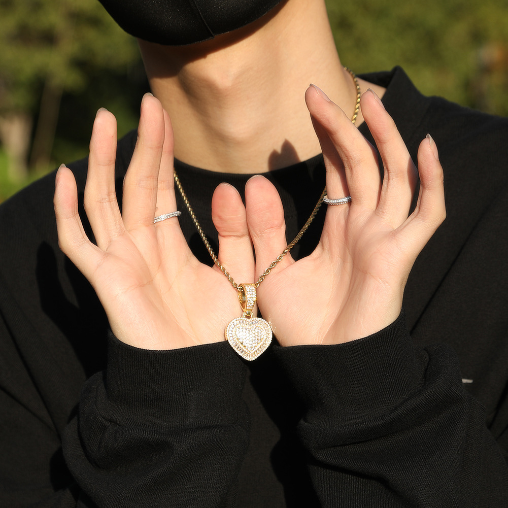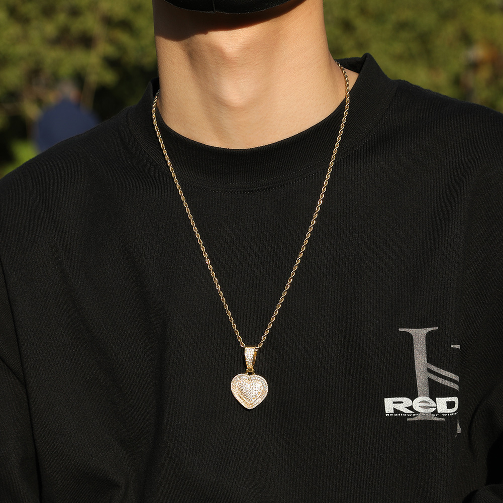 Ancient Cute Copper Inlaid with Zircon Ins Style Heart Pendant Hiphop Hip Hop Rap Trendy Cool Necklace Accessories Jewelry Wholesale
