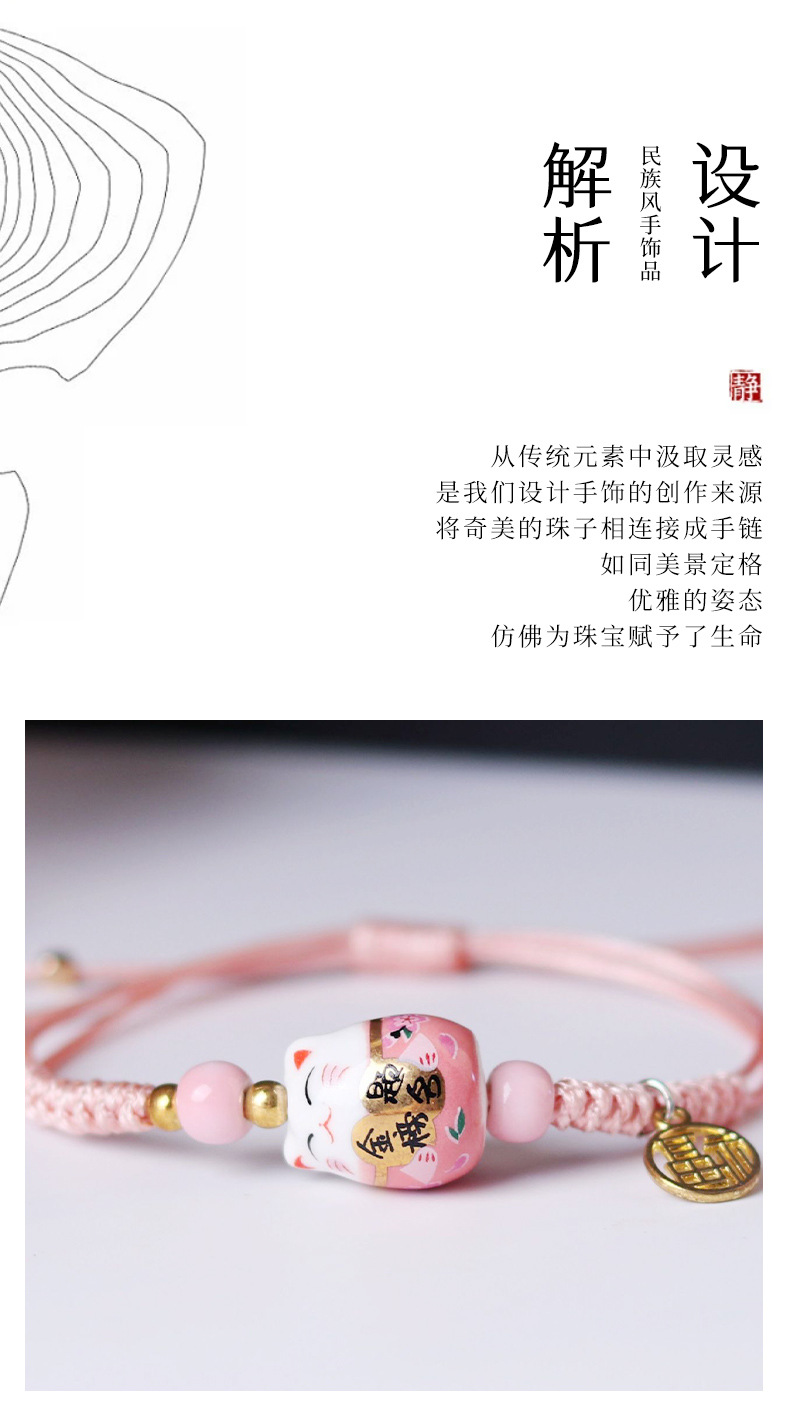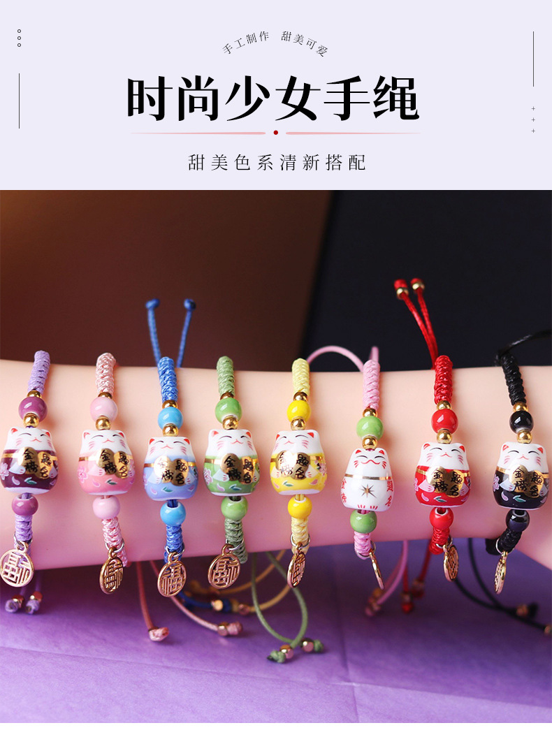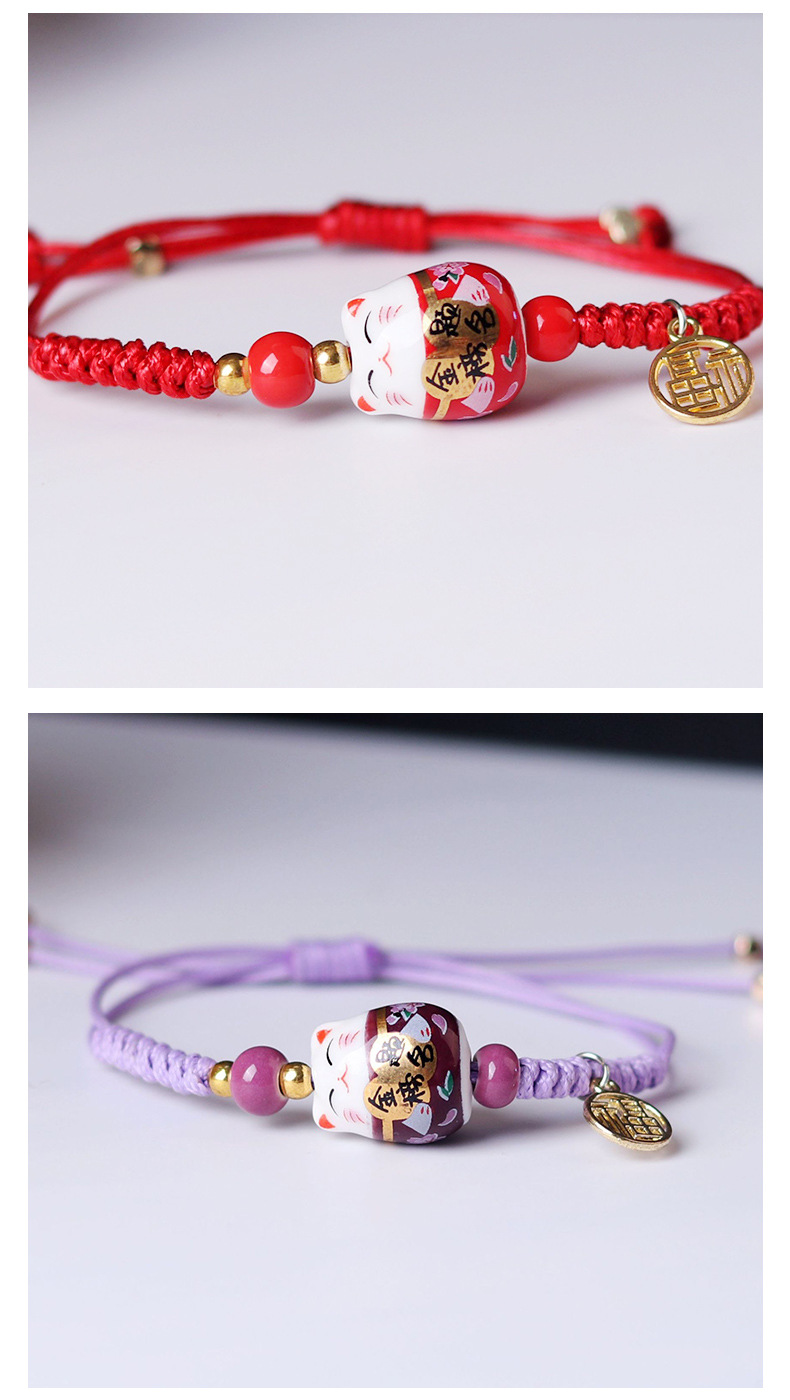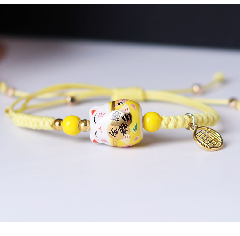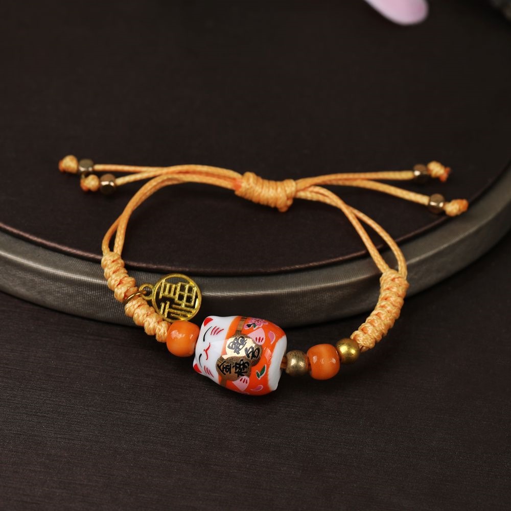 Simple Cute Ceramic Gold-painted Kitten Bracelet for Women Small Clear Student Handmade Woven Lucky Cat Best Friend