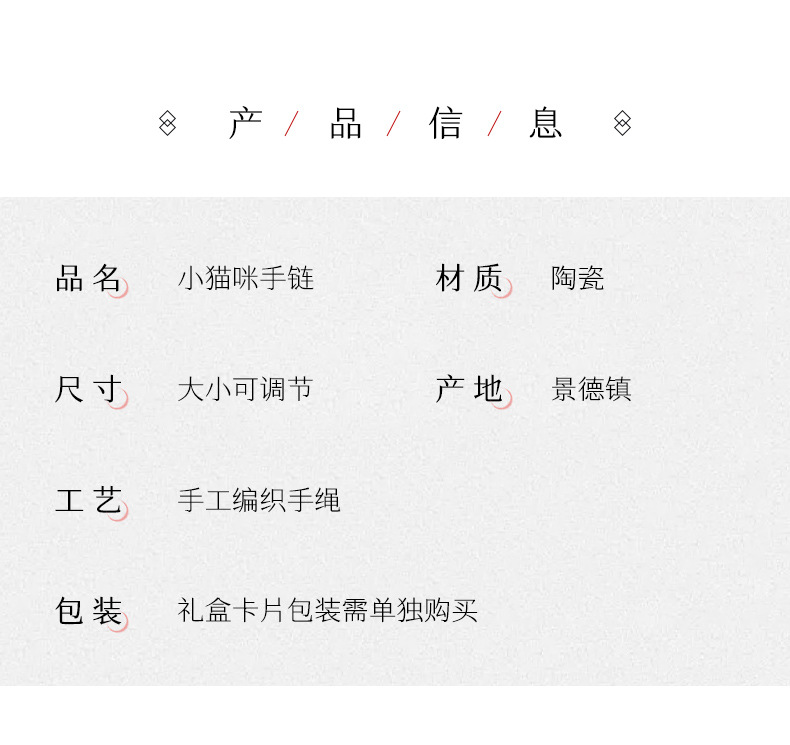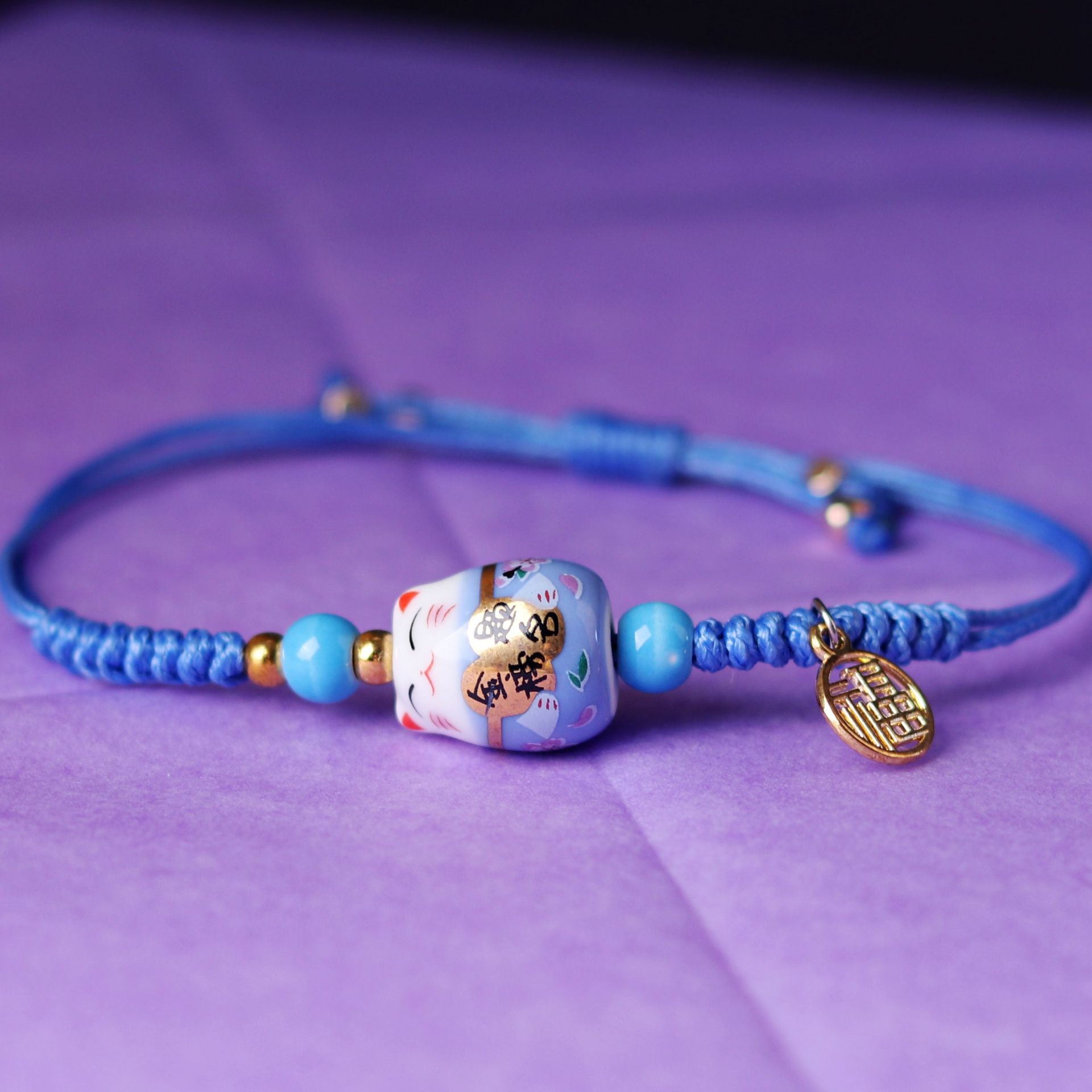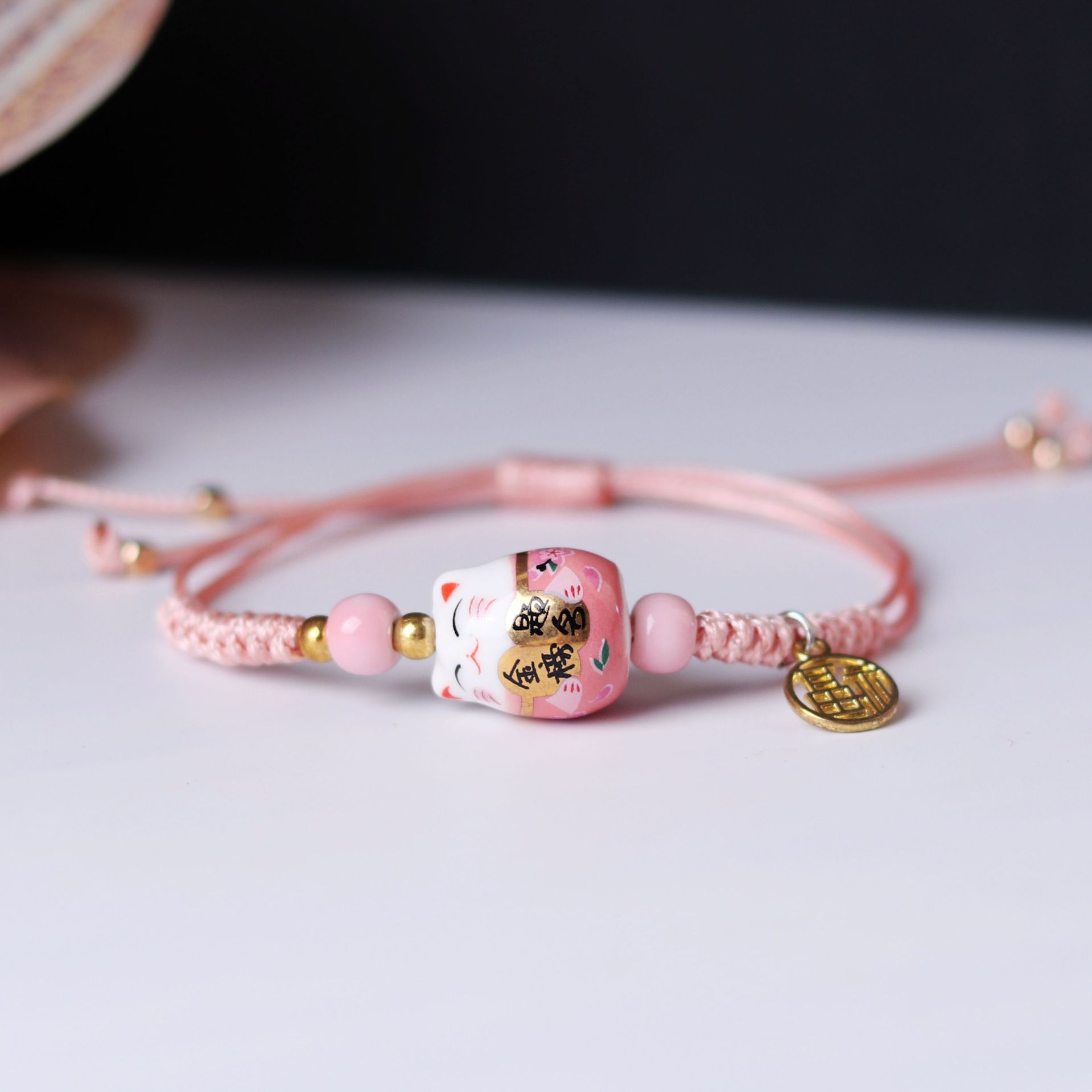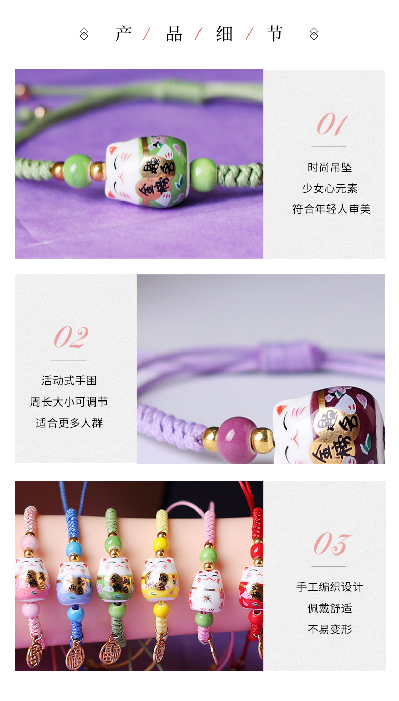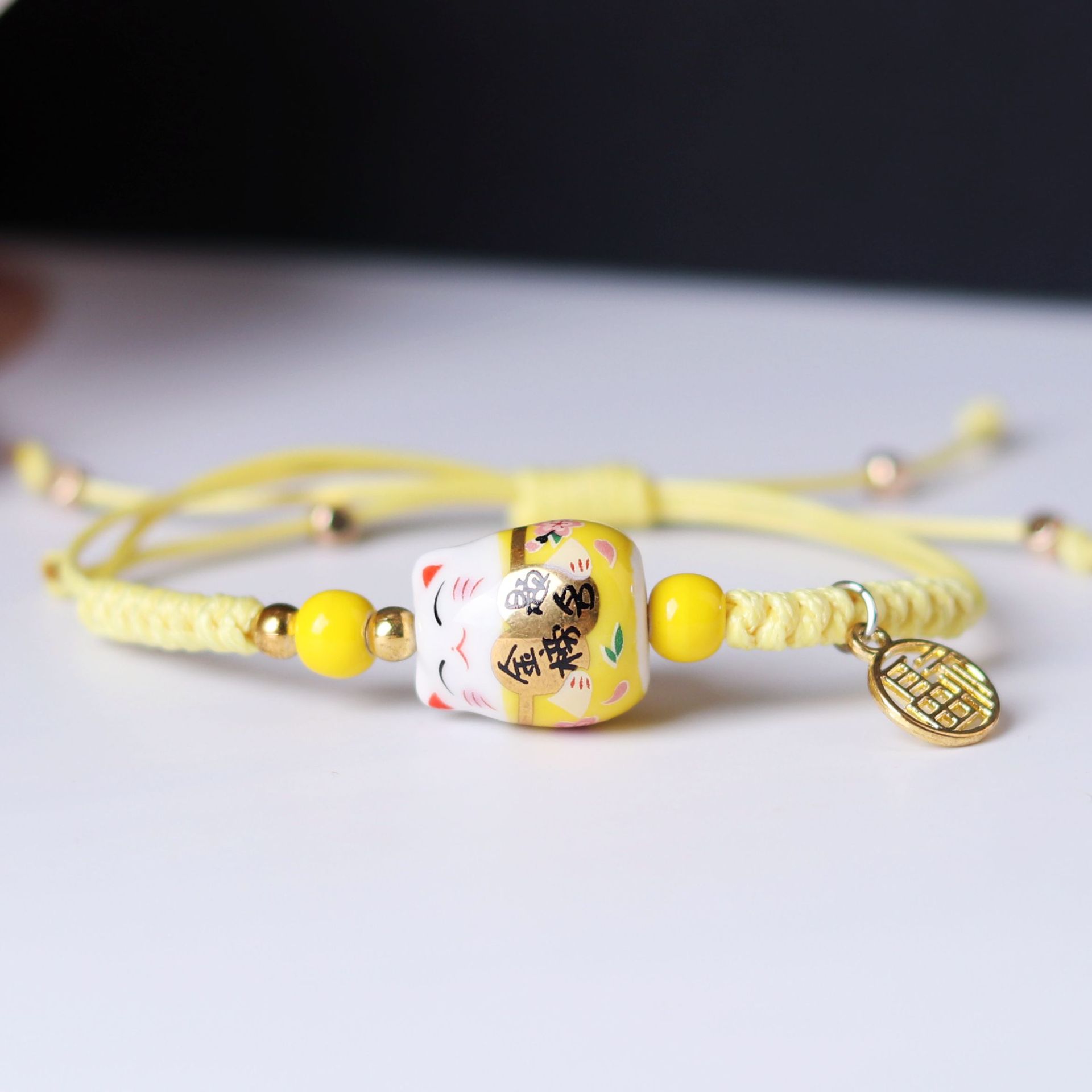 Simple Cute Ceramic Gold-painted Kitten Bracelet for Women Small Clear Student Handmade Woven Lucky Cat Best Friend
