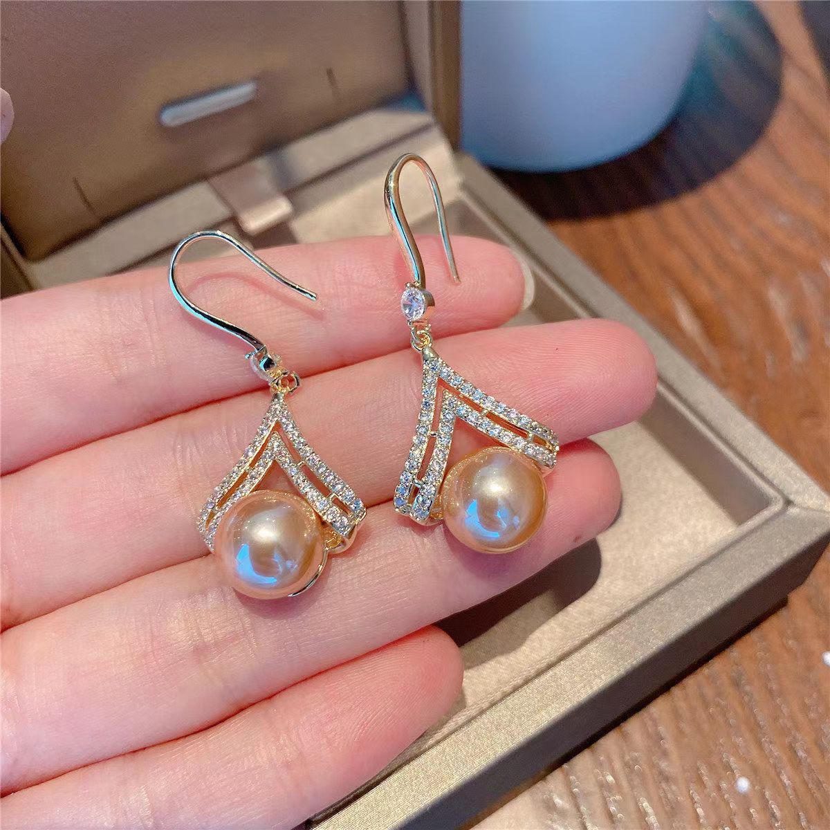 Japanese and Korean Style Accessible Luxury Long Pearl Earrings, Elegant and High-end Diamond Earrings, Sweet and Versatile Rhombus Earrings