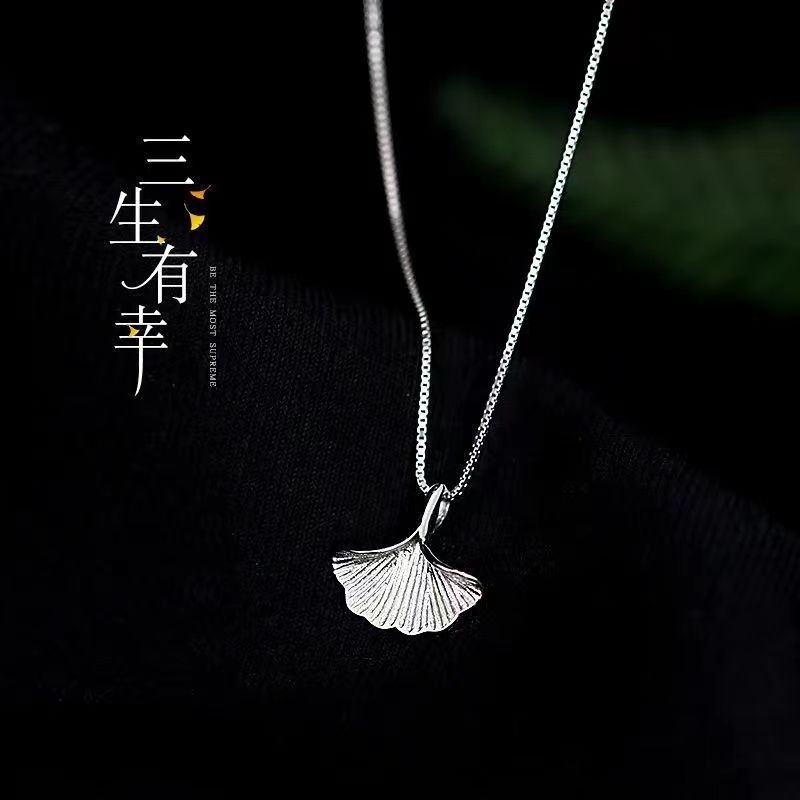 Necklace Women's Niche Design Ginkgo Leaf Pendant Korean-style All-match Simple ins Girlfriend Elegant Cyber Celebrity Clavicle Chain Decoration