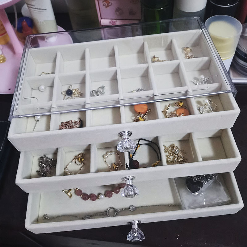 Color: Beige three-layer flannel jewelry box [flannel detachable]]