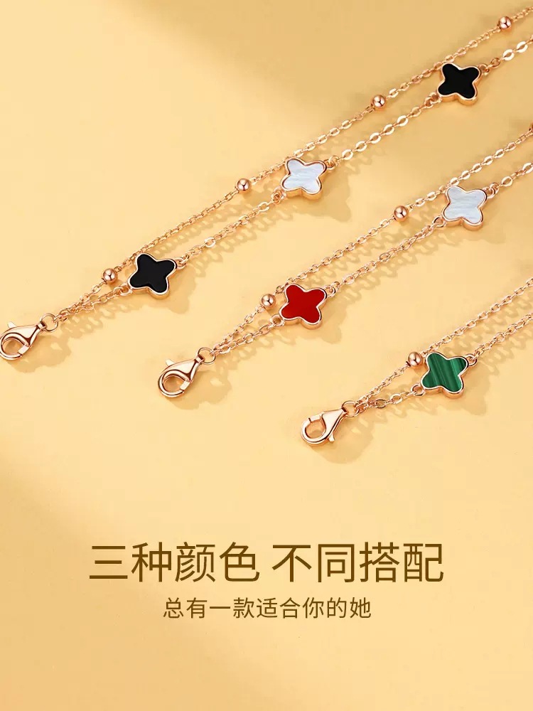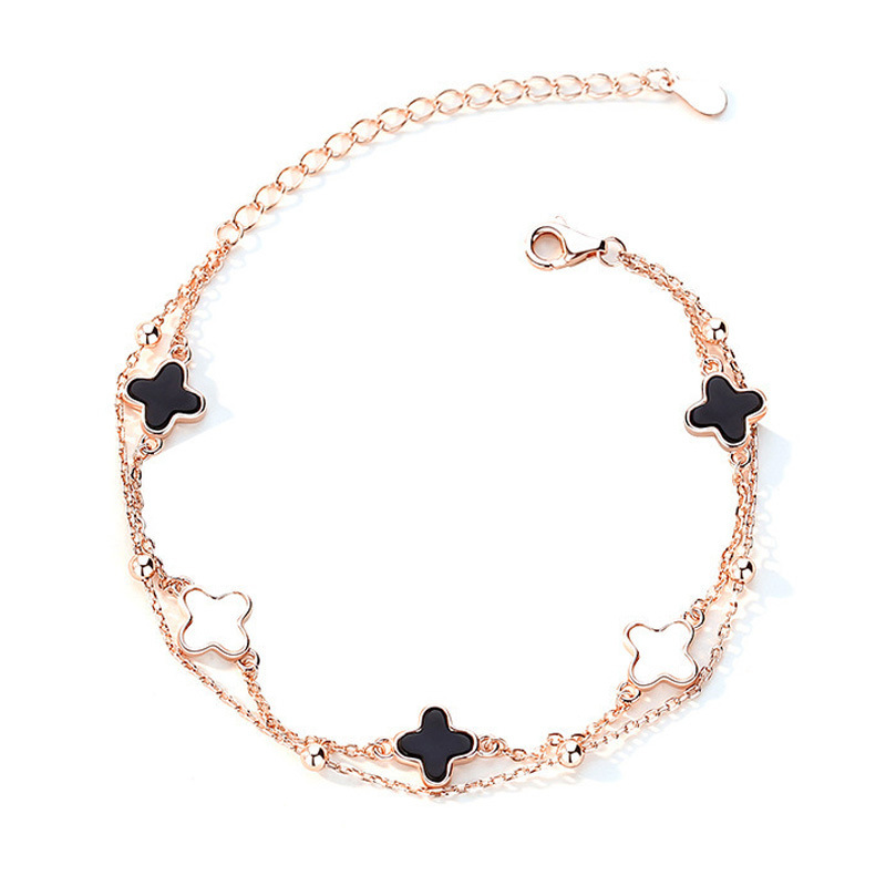 Color: Rose Gold-black agate four-leaf clover bracelet