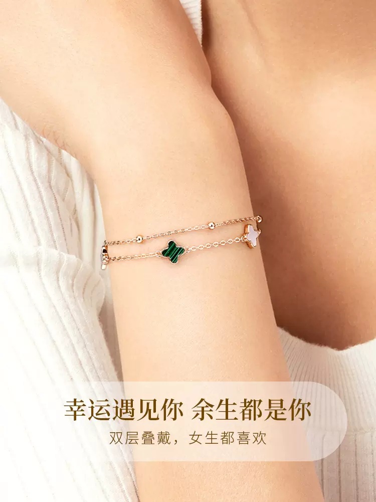 Color: Rose Gold-Malachite Four-leaf Clover Bracelet