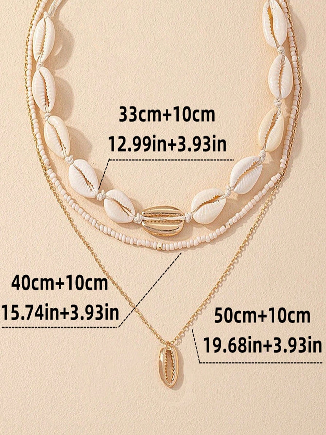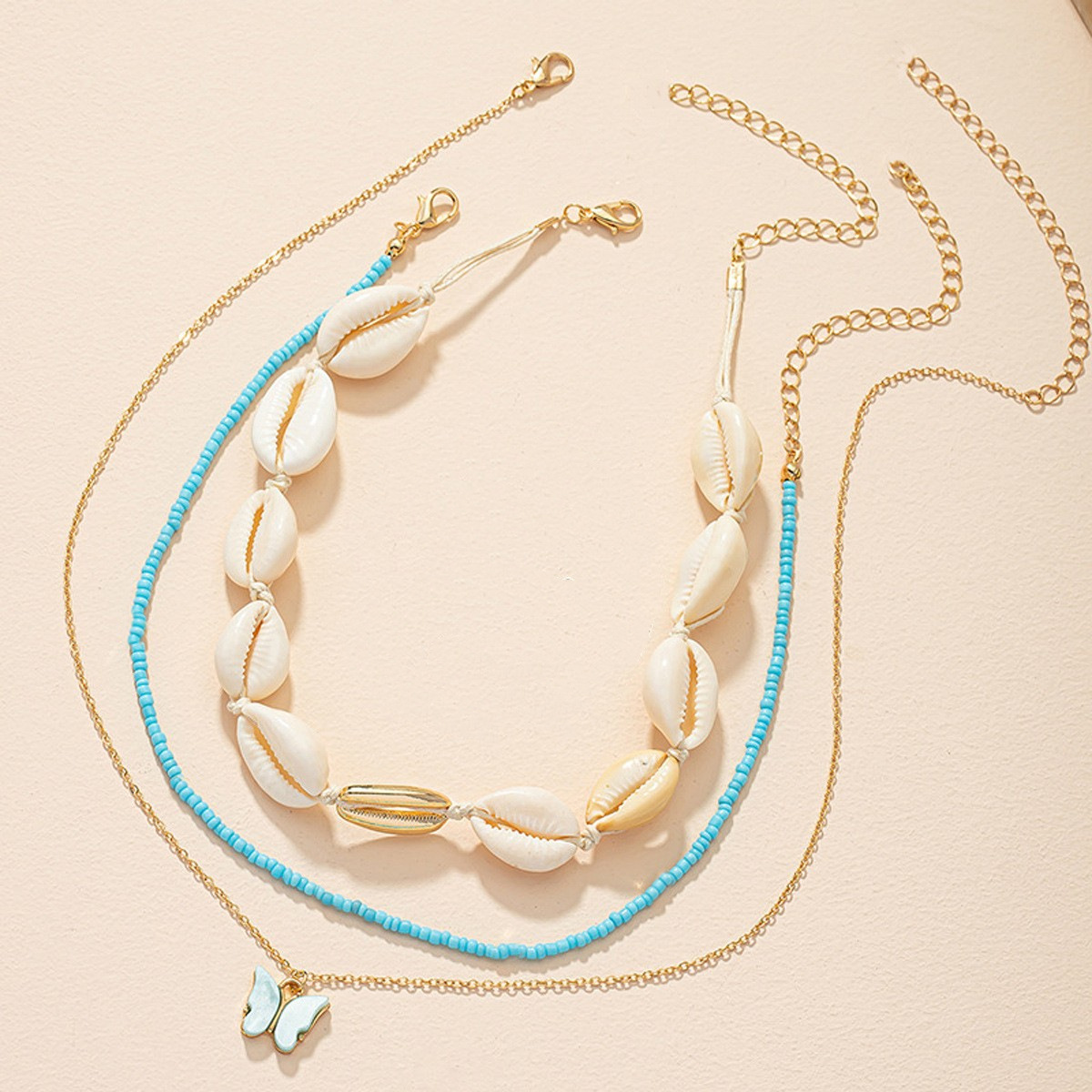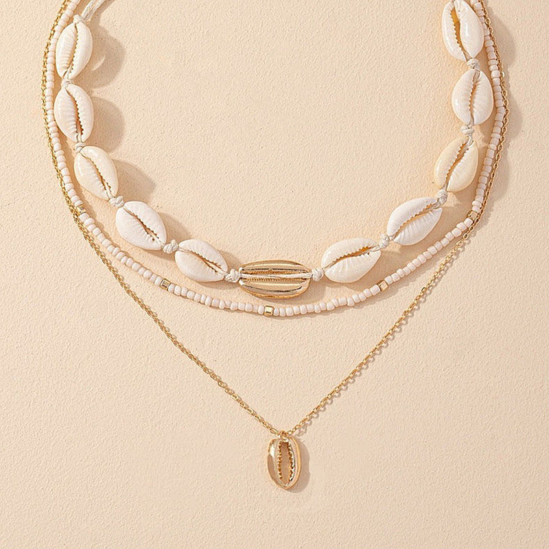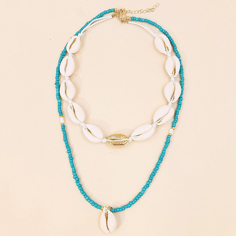 Amazon AliExpress hot sale clavicle chain multi-layer accessories female Bohemian style rice beads shell pendant necklace