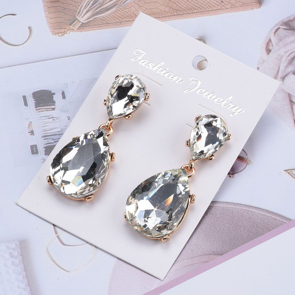 European and American Classic Hot-Selling Water Drop Earrings Glass Diamond Earrings for Women Wish Cross-Border E-Commerce Hot-Selling Earrings Supply Wholesale