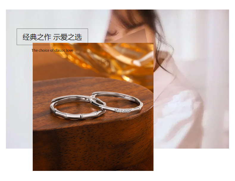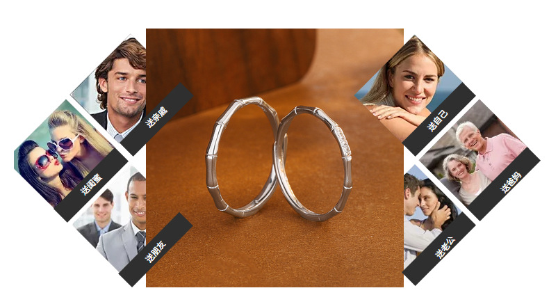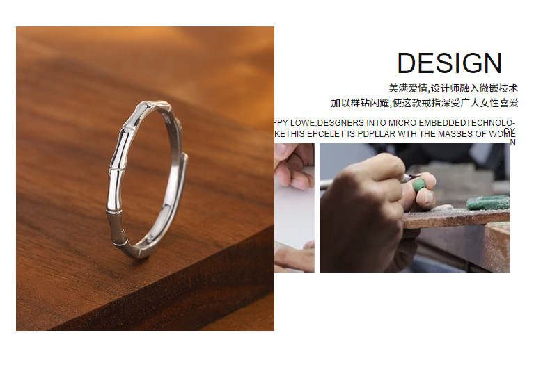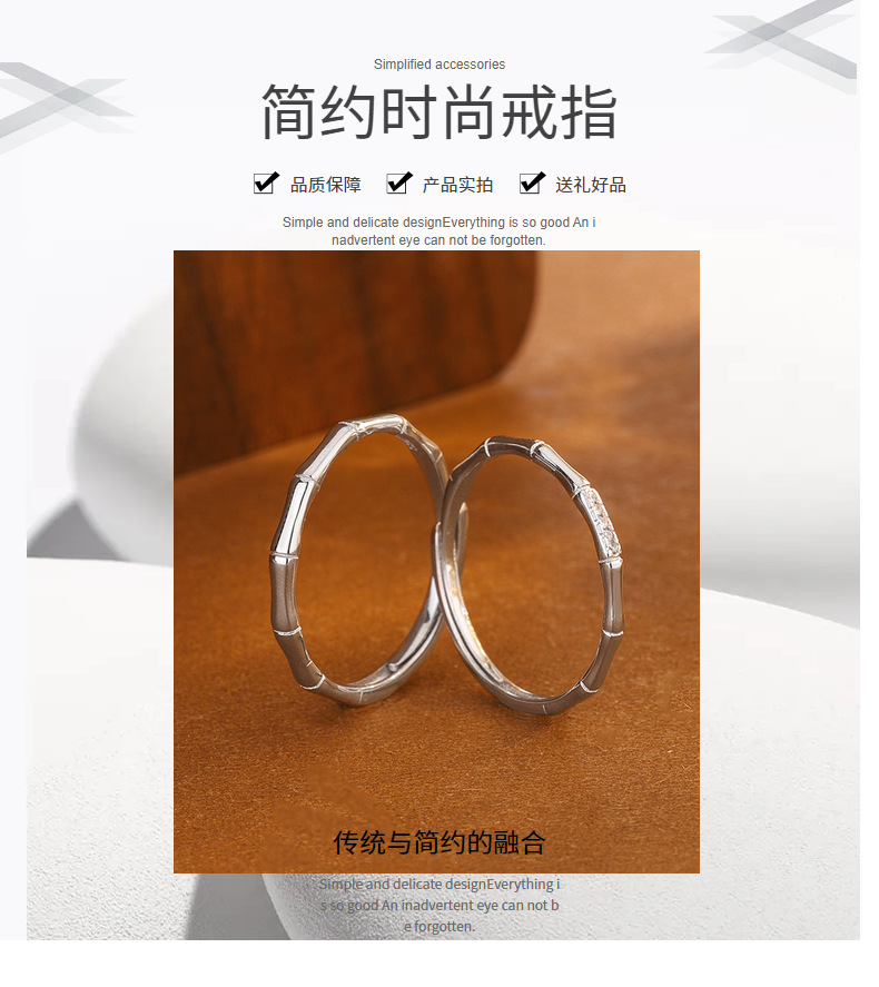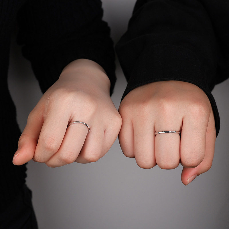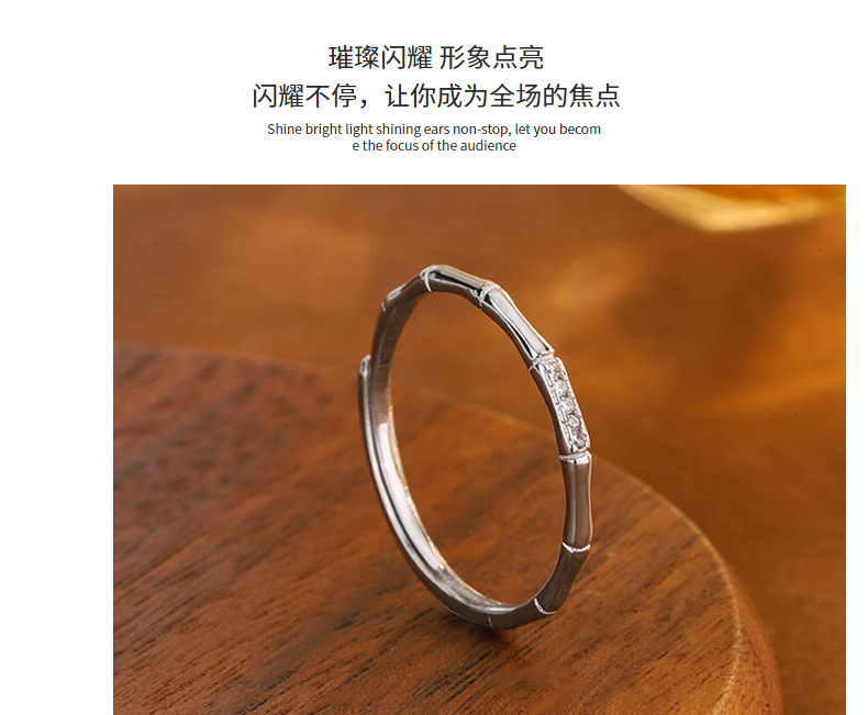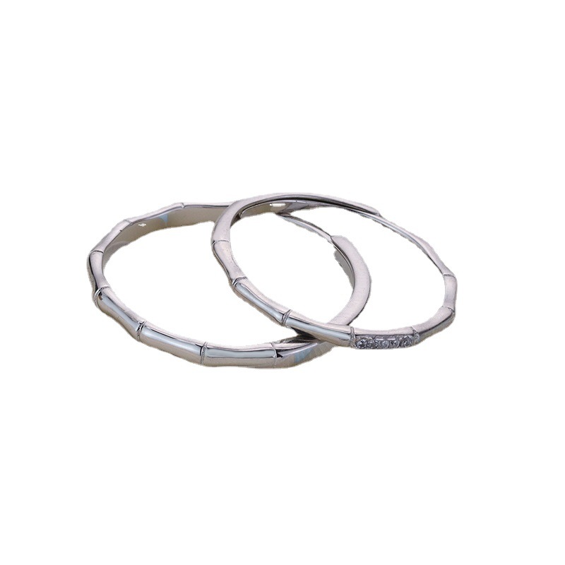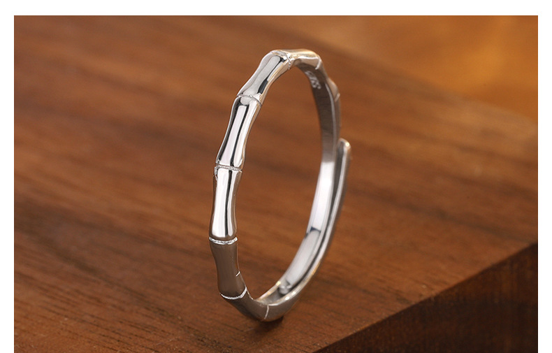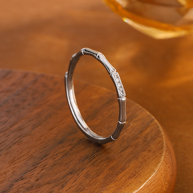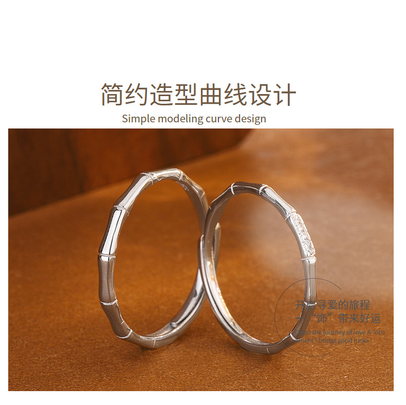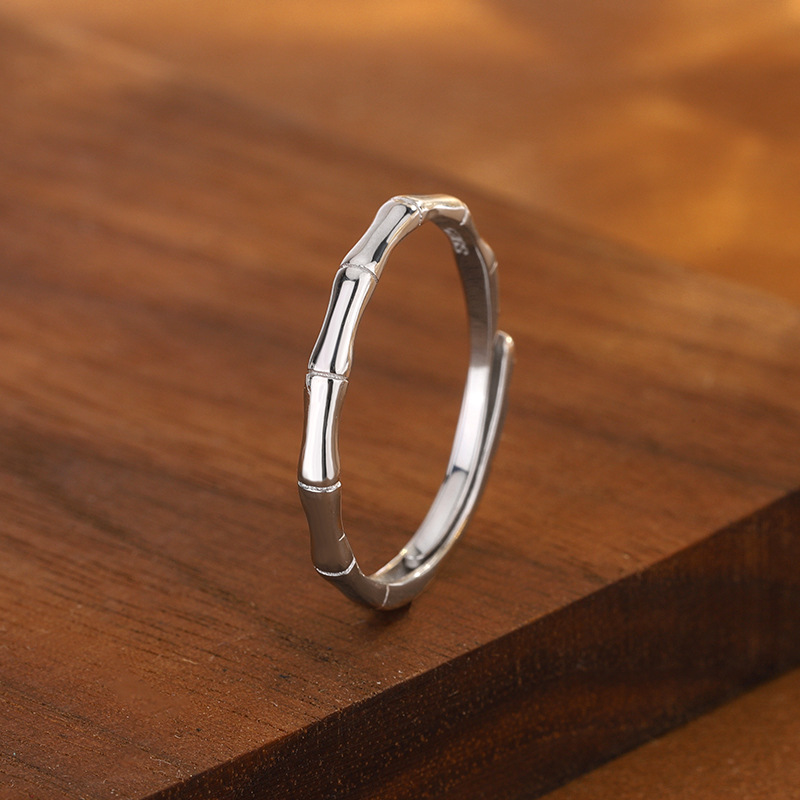 S925 Silver Couple Ring Korean Style Distinctive Bamboo Ring Elegant All-match Tail Ring Light Luxury Design Niche Ring