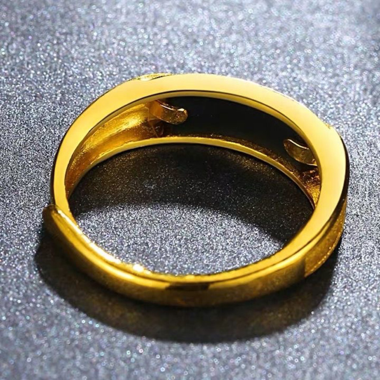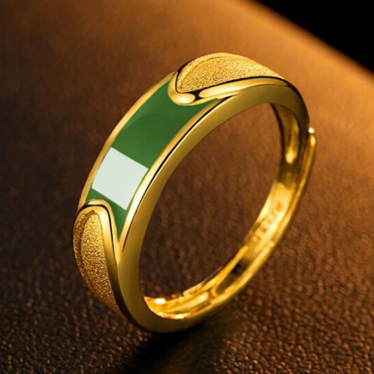 High Imitation Sand Gold Ring for Men and Women, Sand Gold Inlaid with Green Jade Green Ring, Young Ring Opening Adjustable