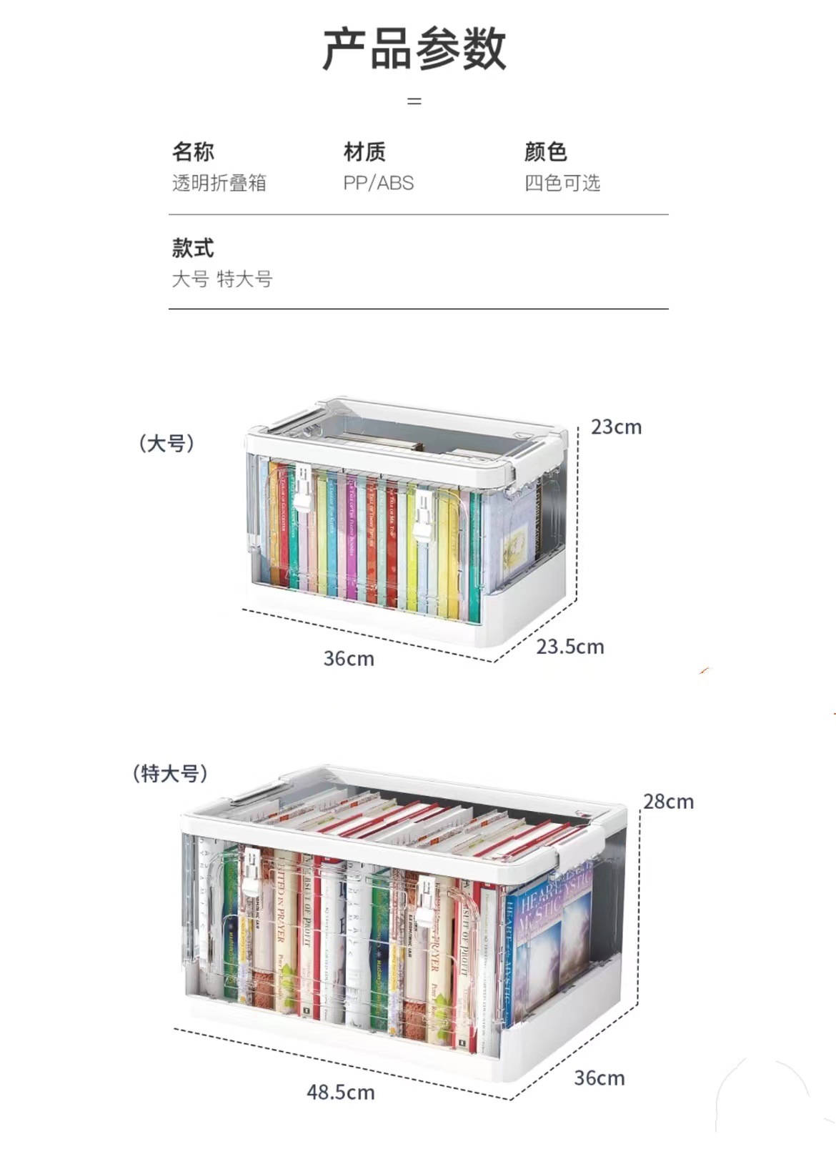 Transparent Folding Storage Box Bedroom Clothing Storage Box Home Dormitory Plastic Box Student Books Snack Storage Box