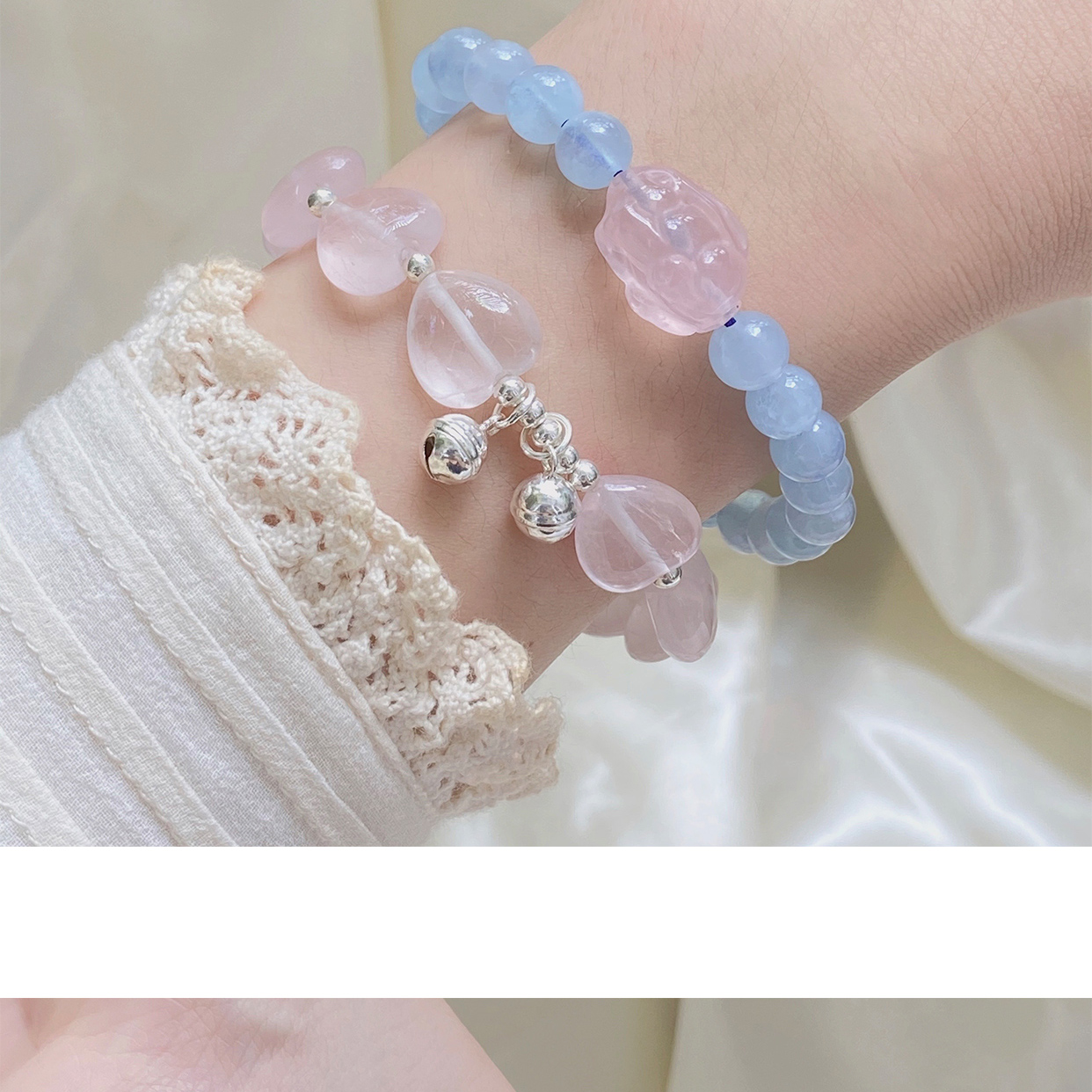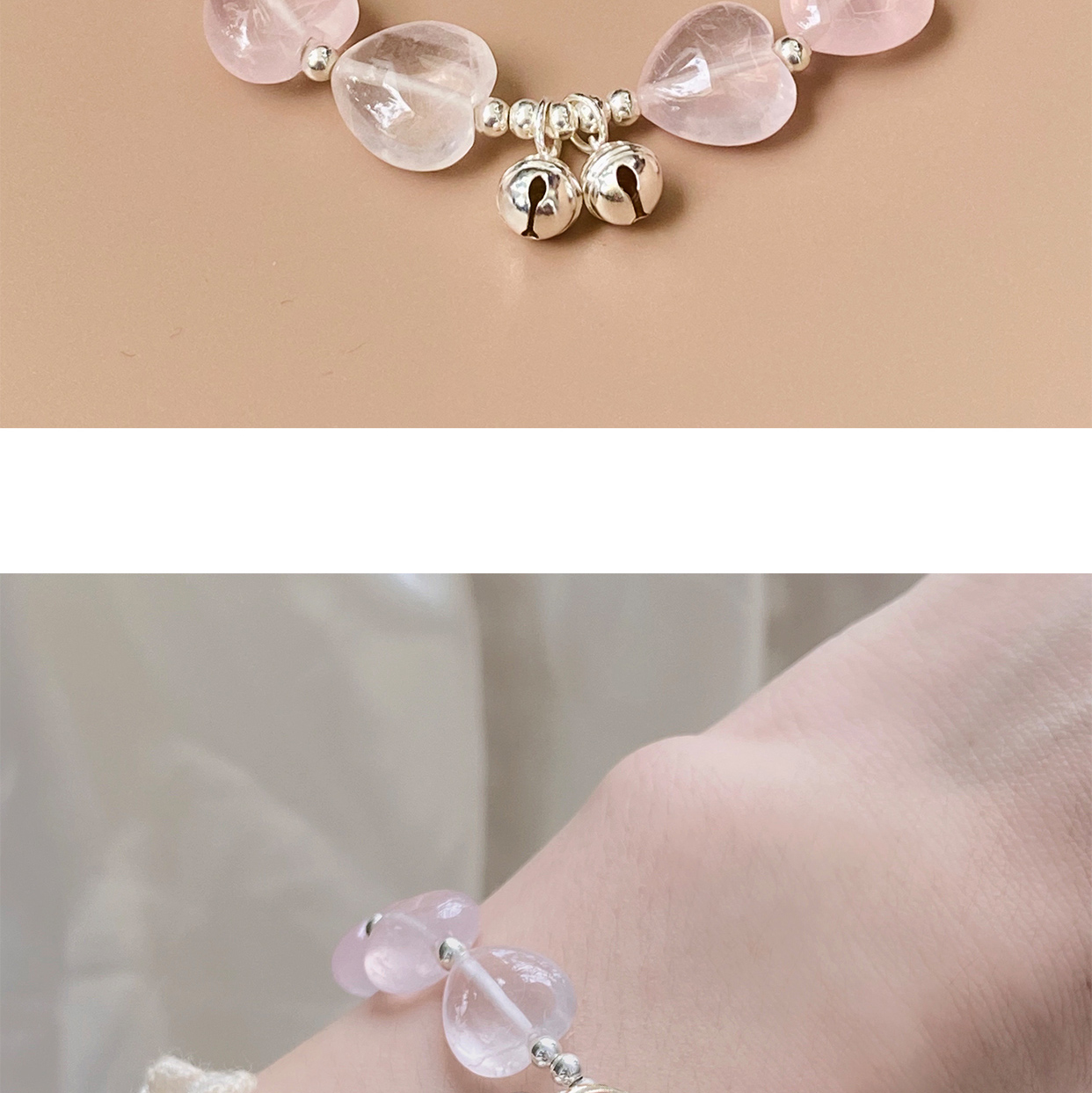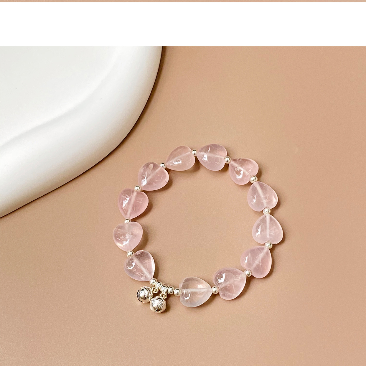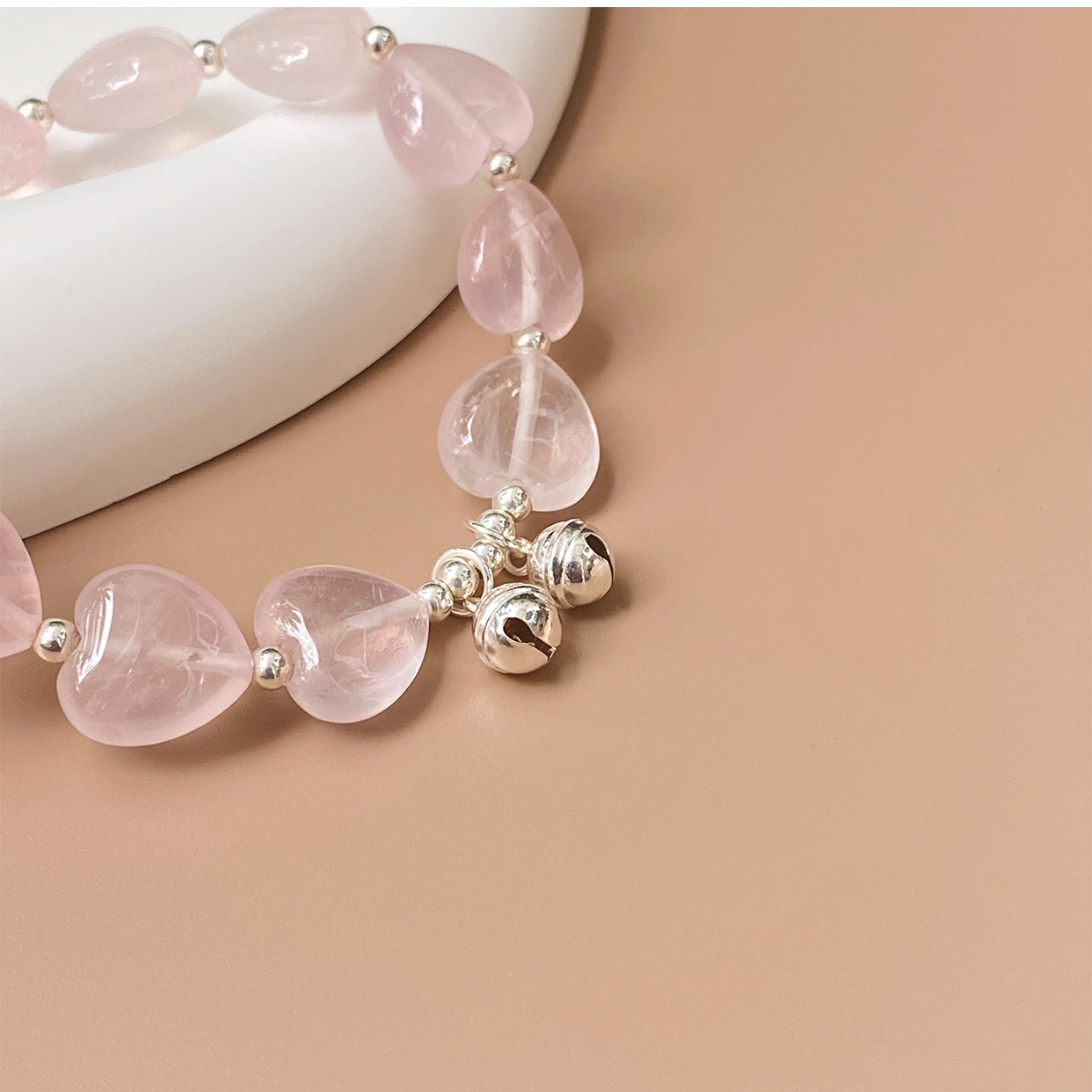 New Heartfelt Thing into Peach Blossom Pink Crystal Heart Bell Beads 925 Silver Bracelet Female Best Friend Niche Exquisite Summer Batch