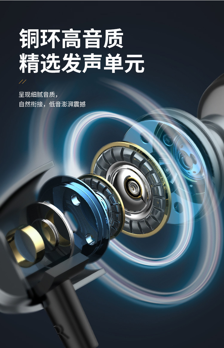 Color: Rio Tinto V1 All-Metal Headset-Blue Copper Ring Horn Gift Box