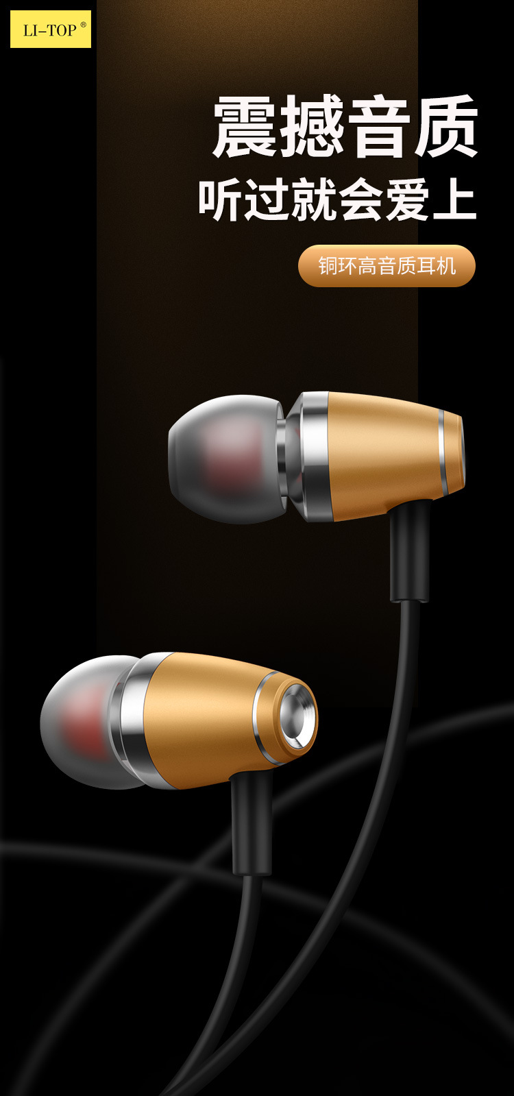 Color: Rio Tinto V1 all-metal headphones-golden copper ring horn gift box