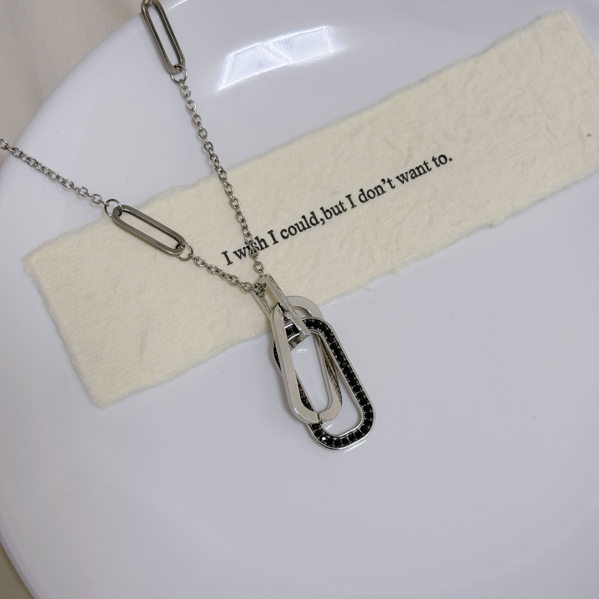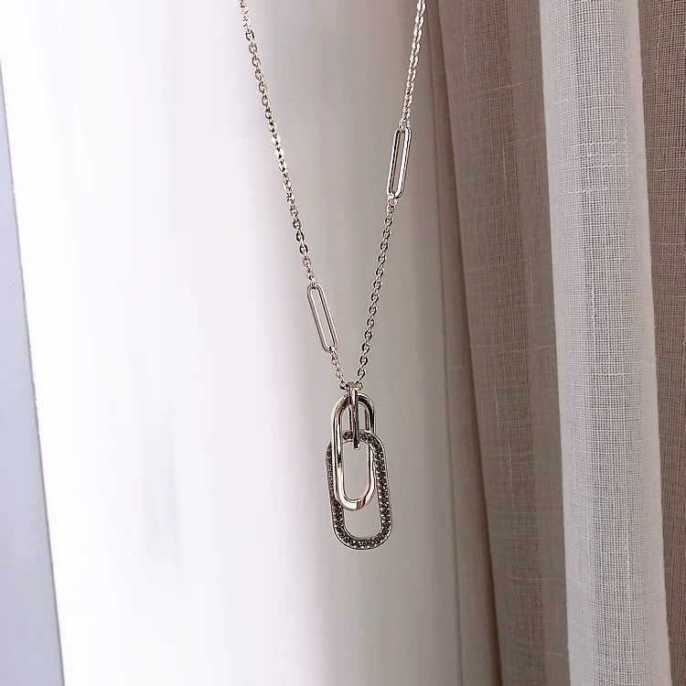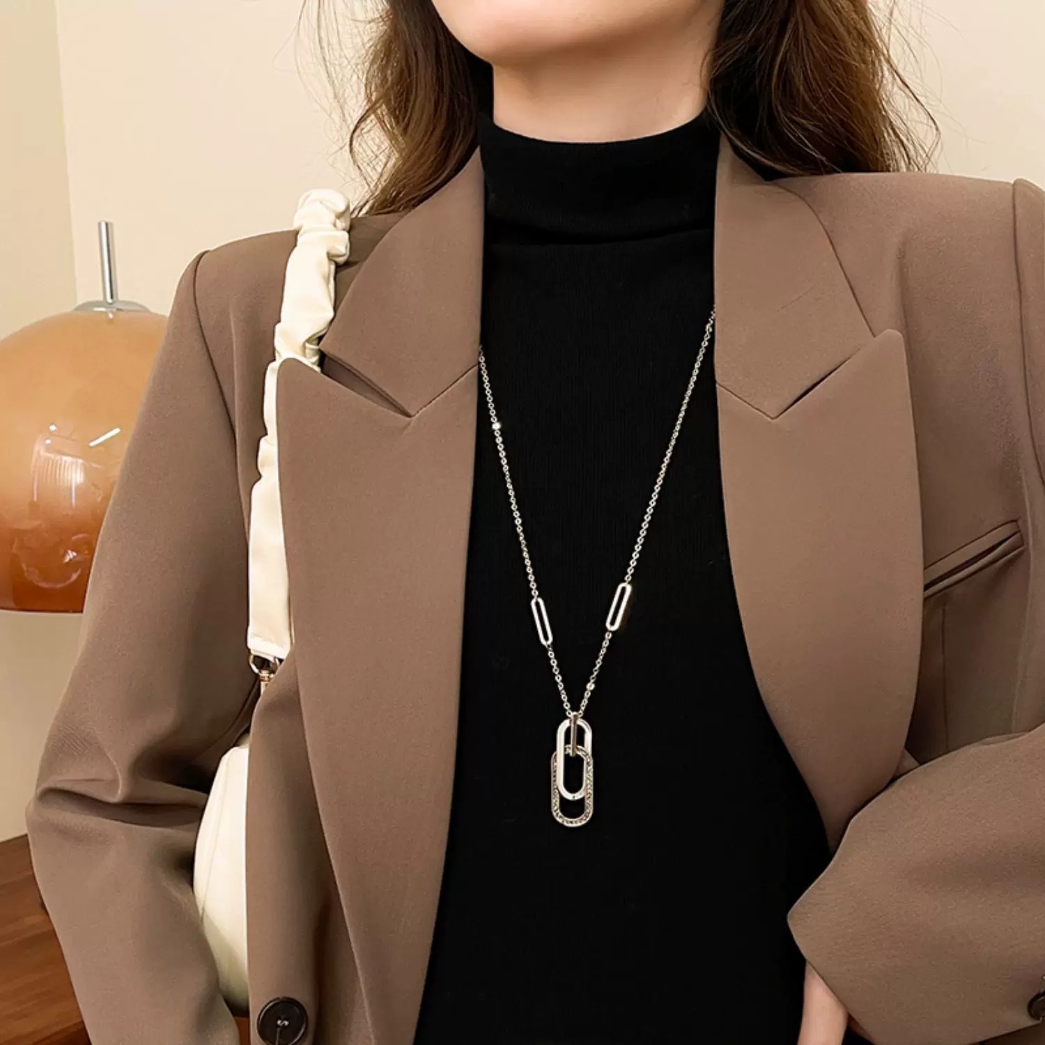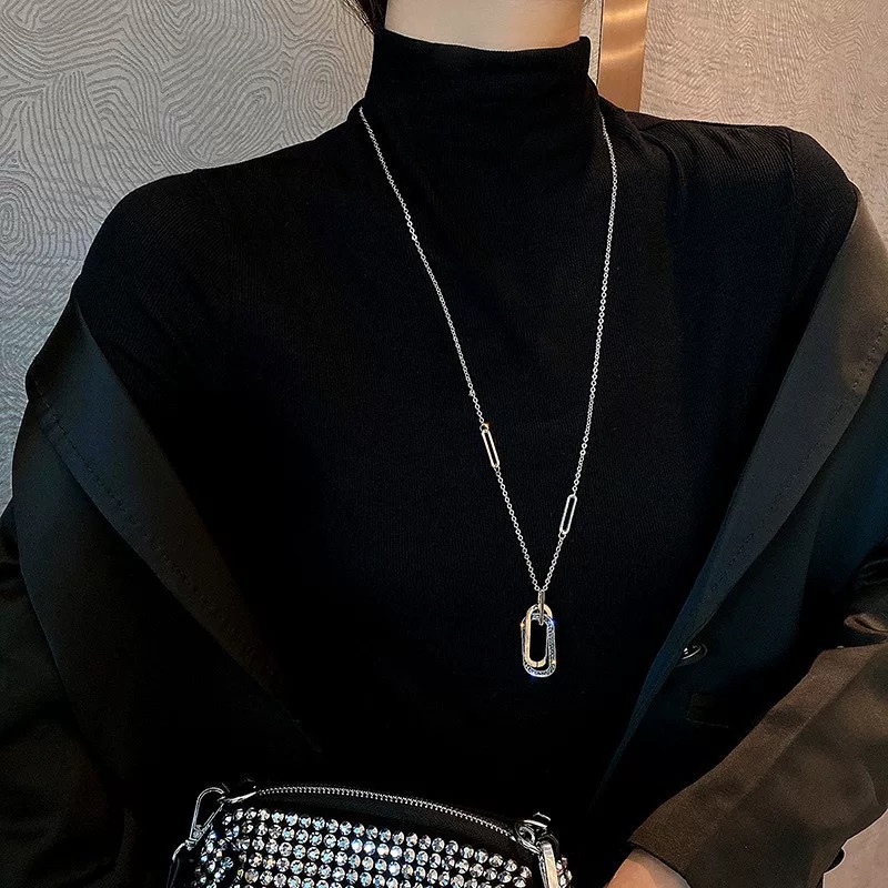 Casual Diamond-Encrusted Geometric Long Titanium Steel Non-Fading Necklace Women's Fashionable Elegant High-End Interlocking Sweater Chain