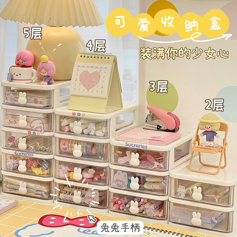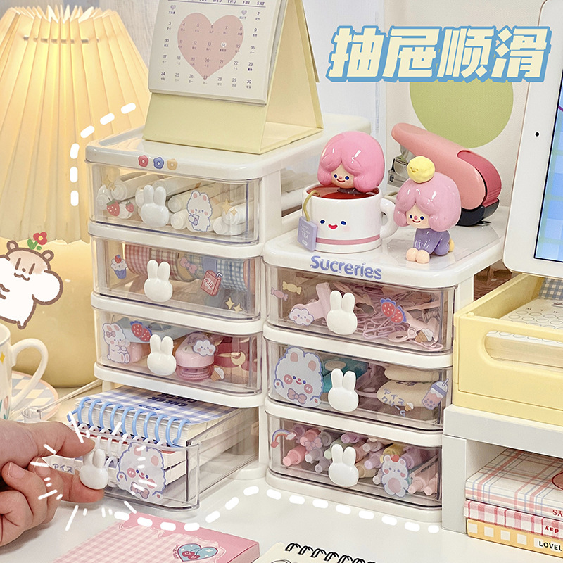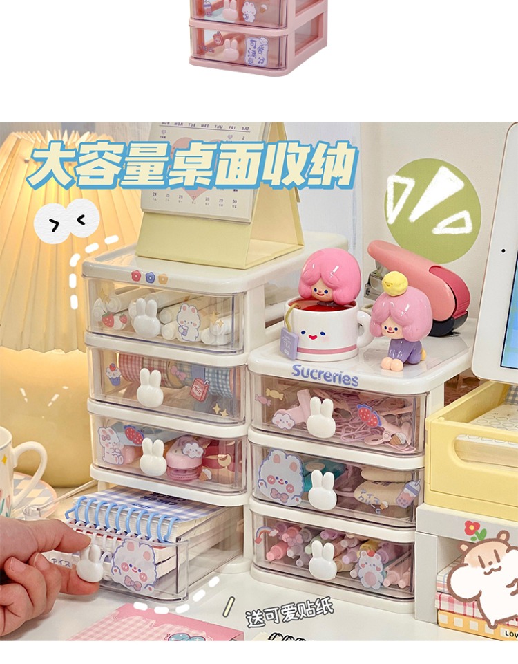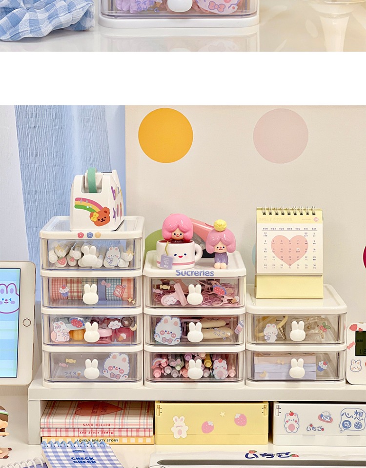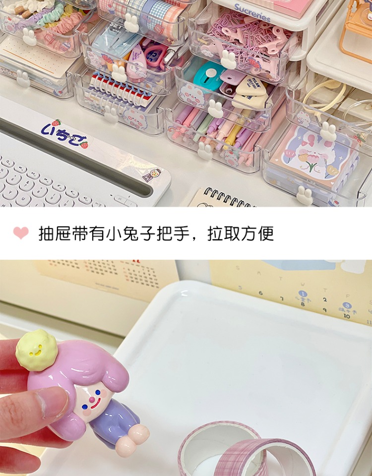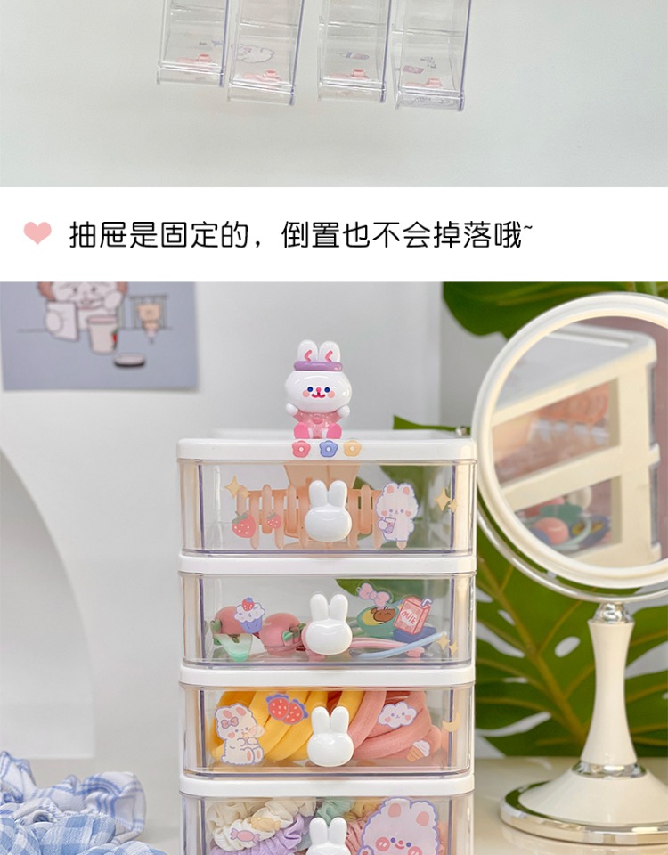 9Wor Jewelry Storage Box Cute Desktop Rabbit Transparent Storage Box Hair Accessories Hair Rope Hairpin Jewelry Organizing Box
