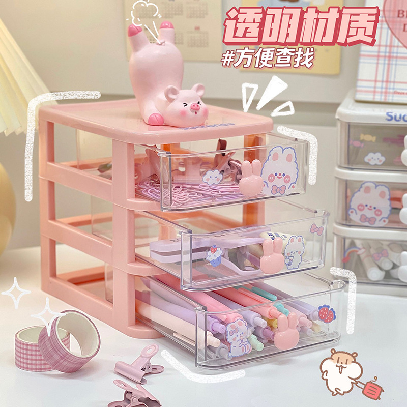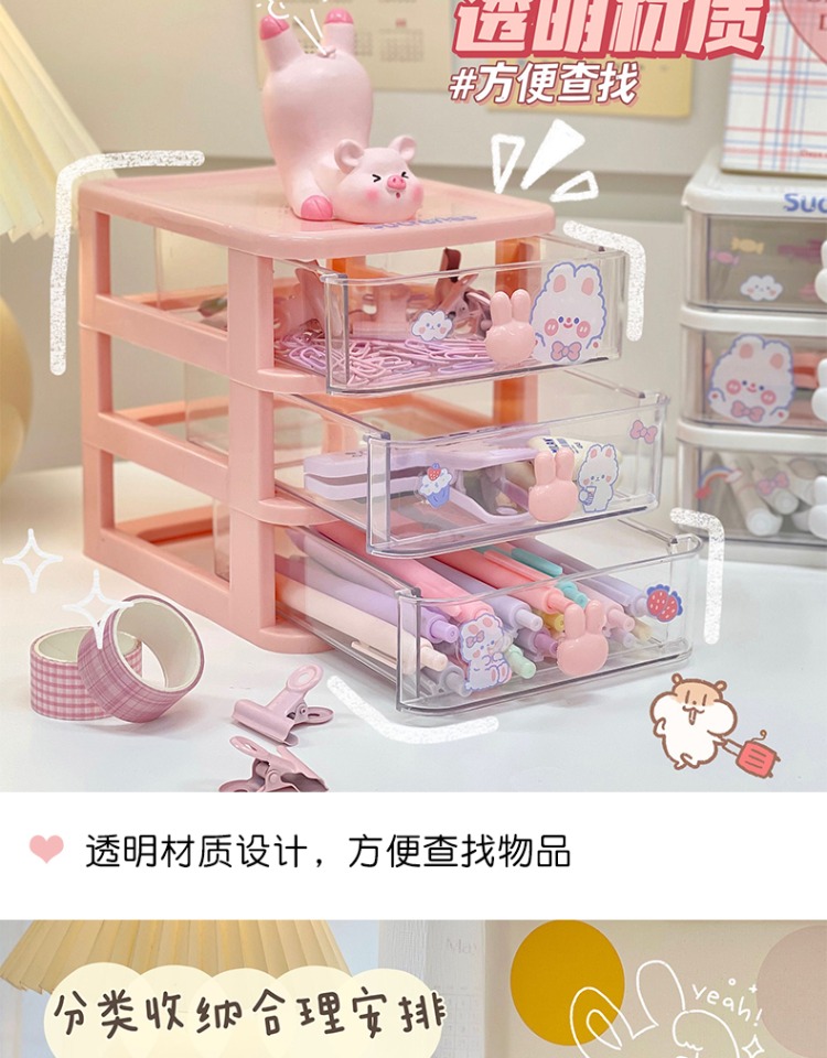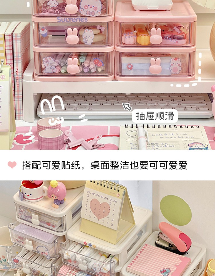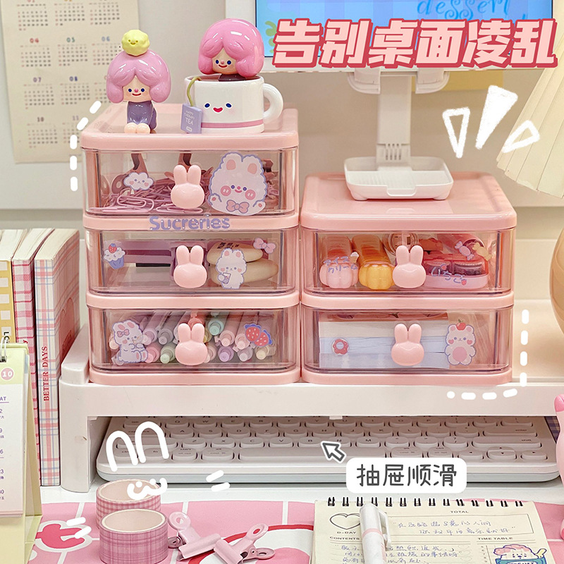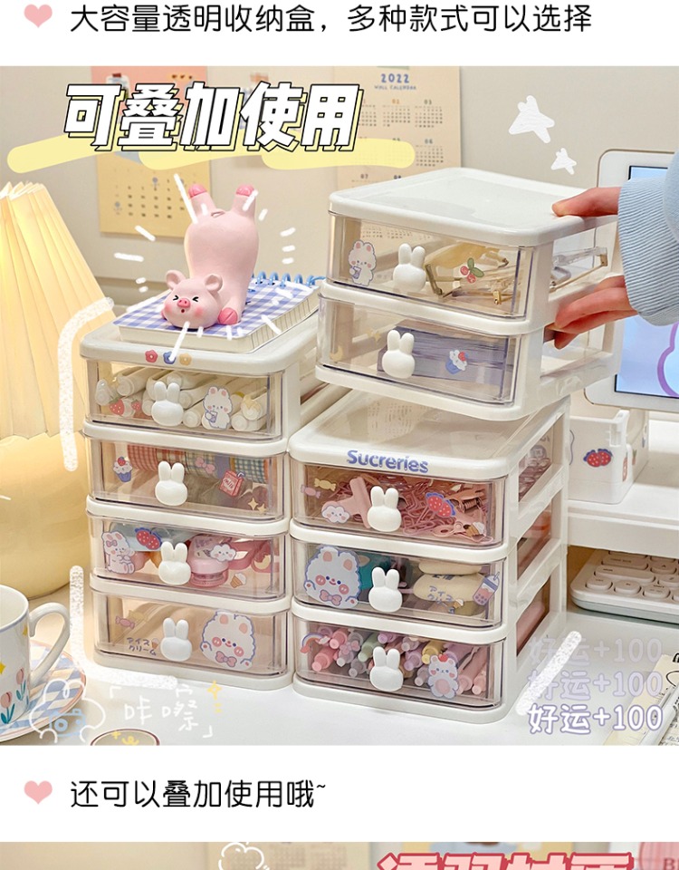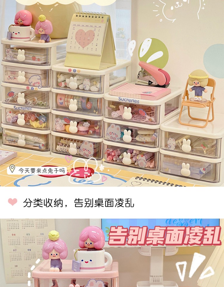 9Wor Jewelry Storage Box Cute Desktop Rabbit Transparent Storage Box Hair Accessories Hair Rope Hairpin Jewelry Organizing Box