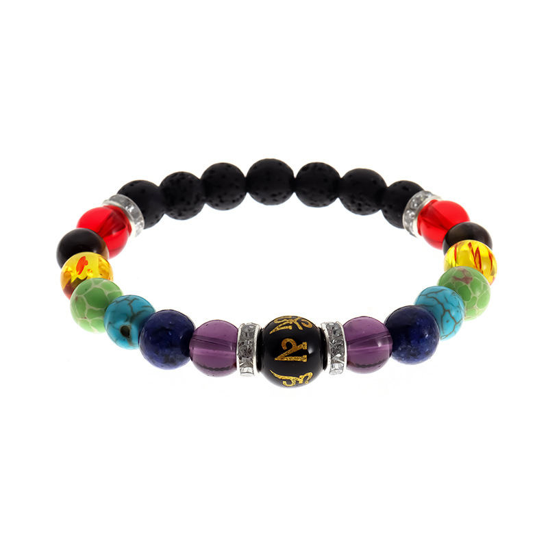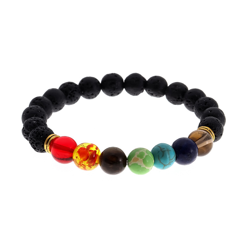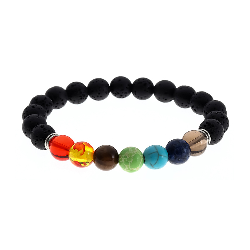Color: Silver-Spacer-Volcanic Stone Colorful Bracelet