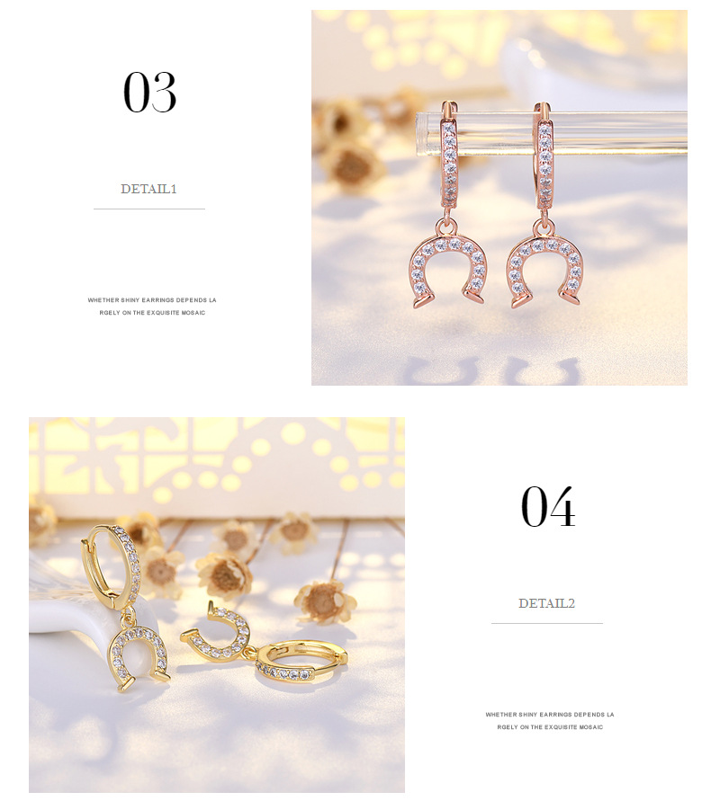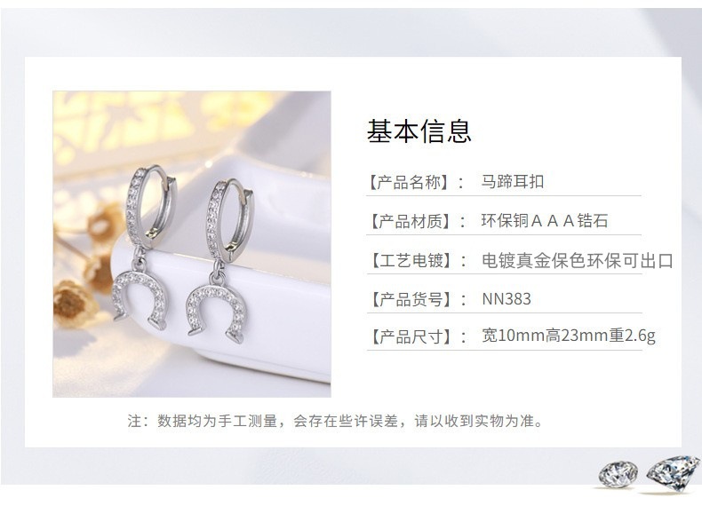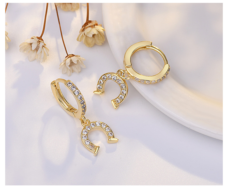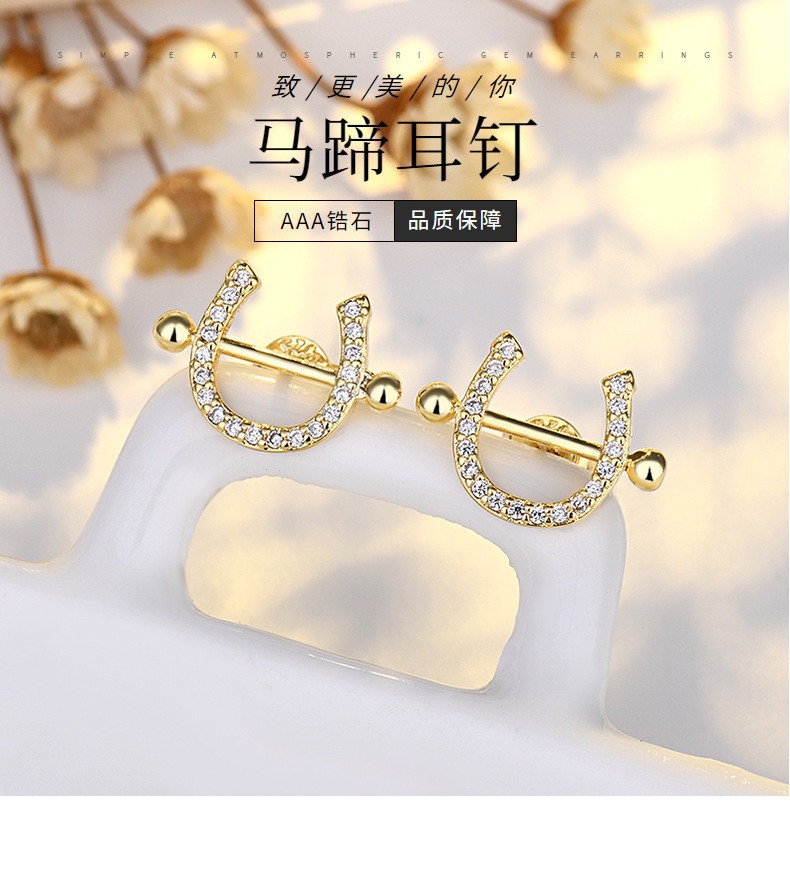 New Diamond Small Horseshoe Buckle Circle Ear Buckle Ear Ring Women's Fashionable Elegant French Style Compact Commuter Earrings