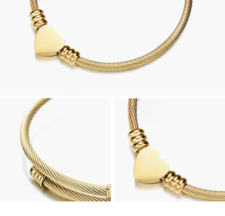 Color: Peach Heart Wire Rope Bracelet-Steel Color