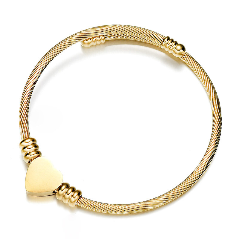 Color: Peach Heart Wire Rope Bracelet-Gold
