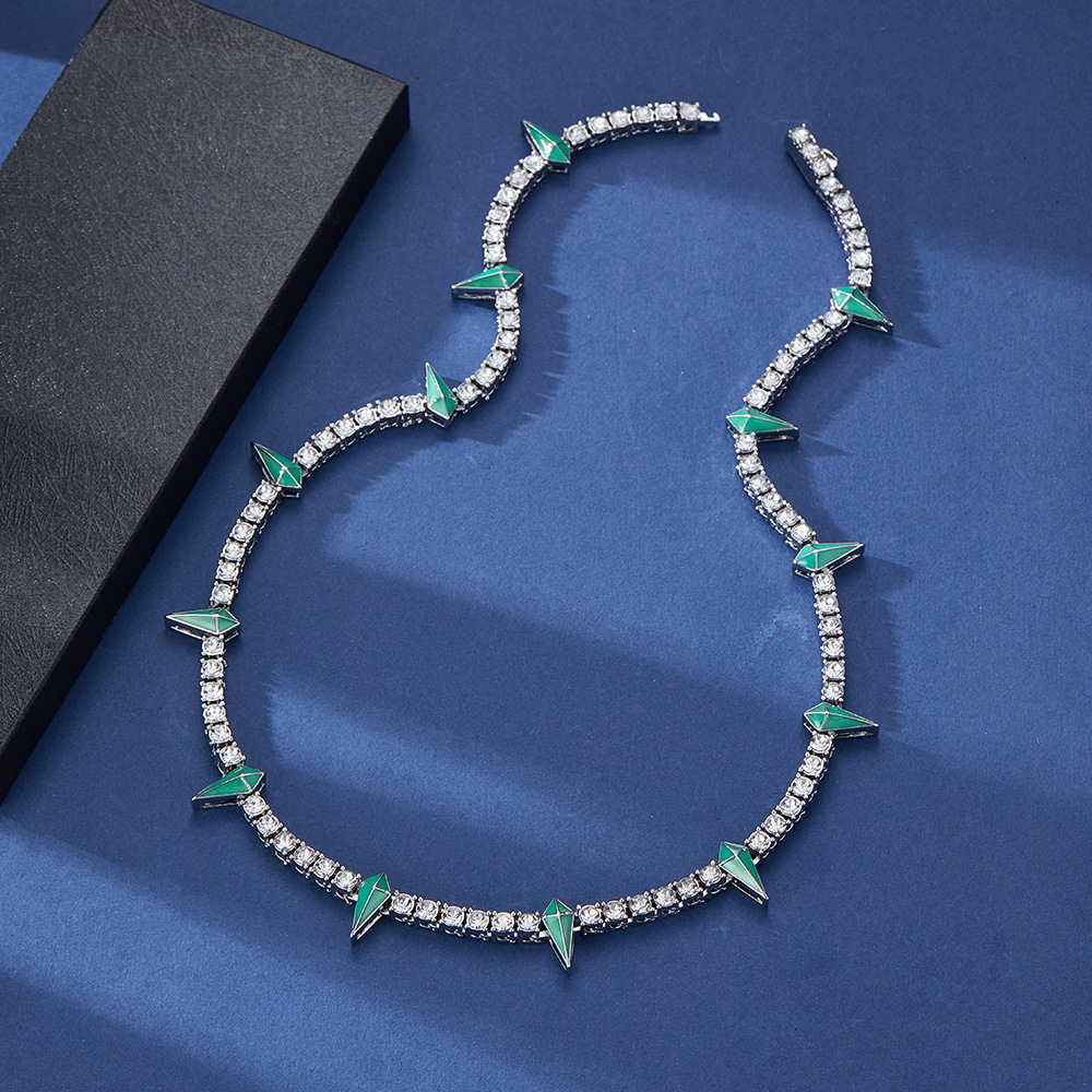 Color: Silver dripping green panther necklace