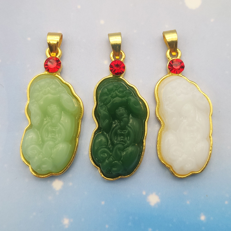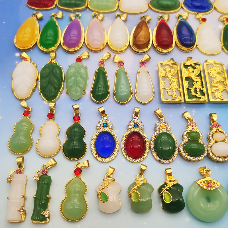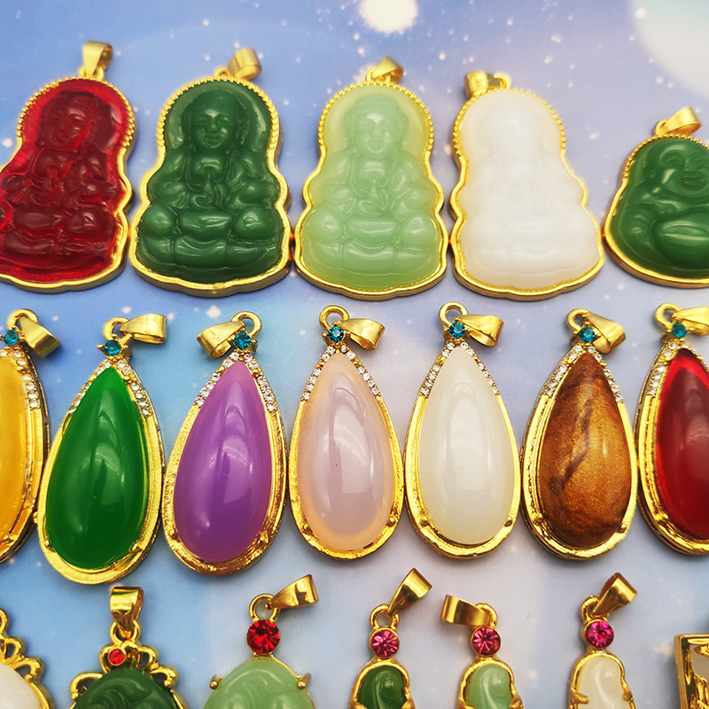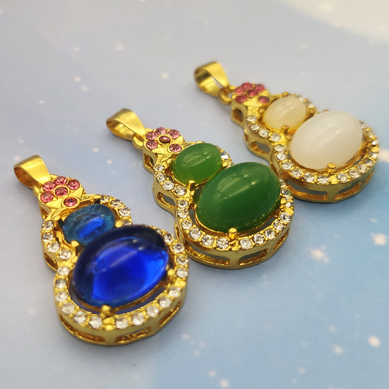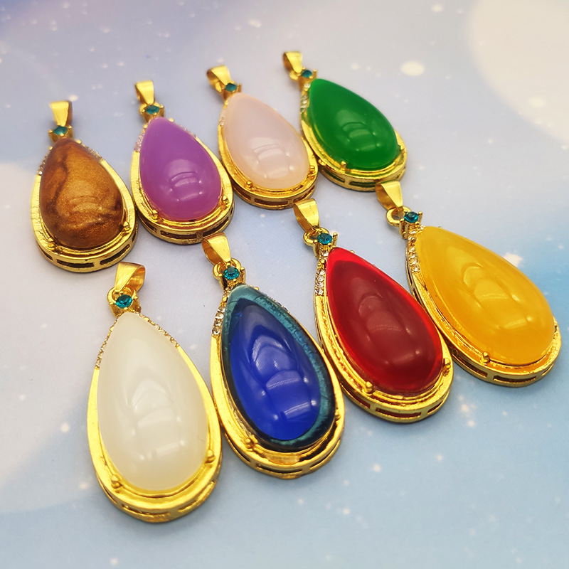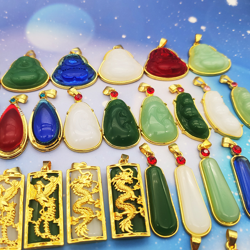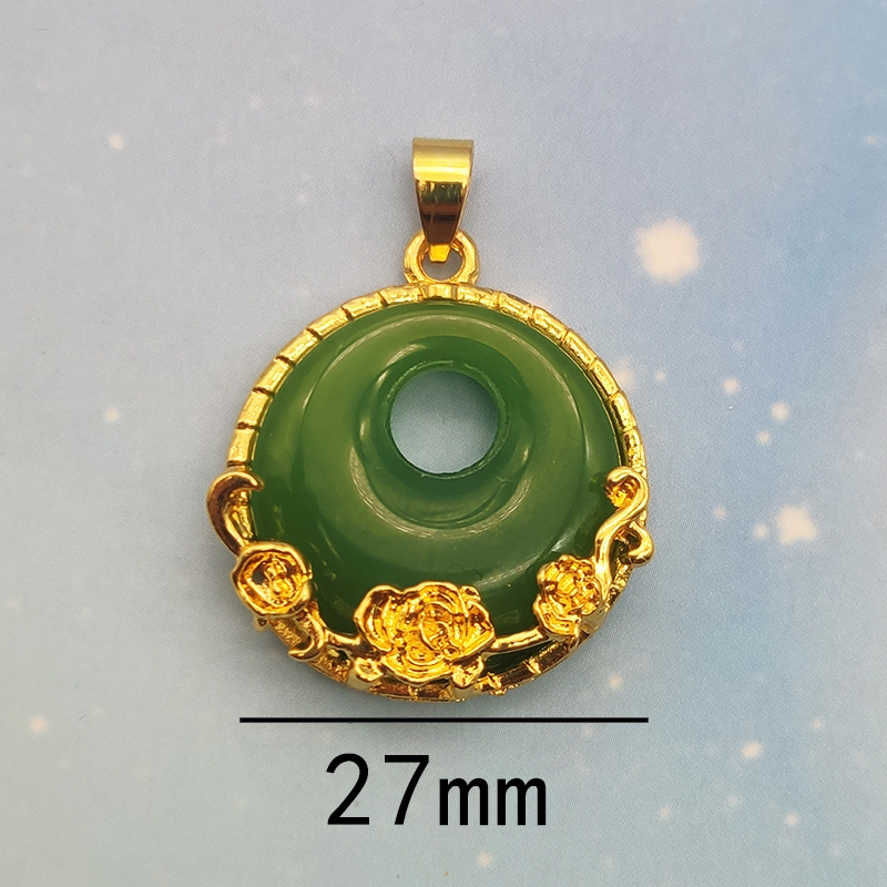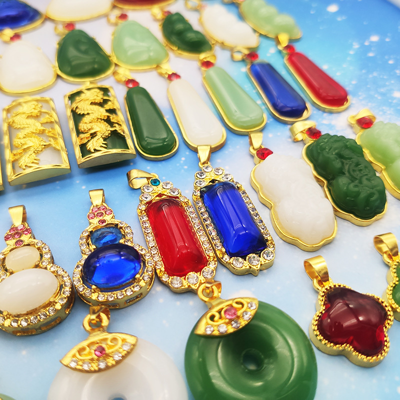材质:合金边框,电镀仿金,中间人造玉料,水晶玻璃材质