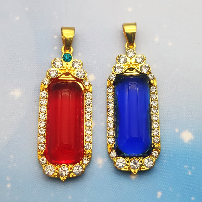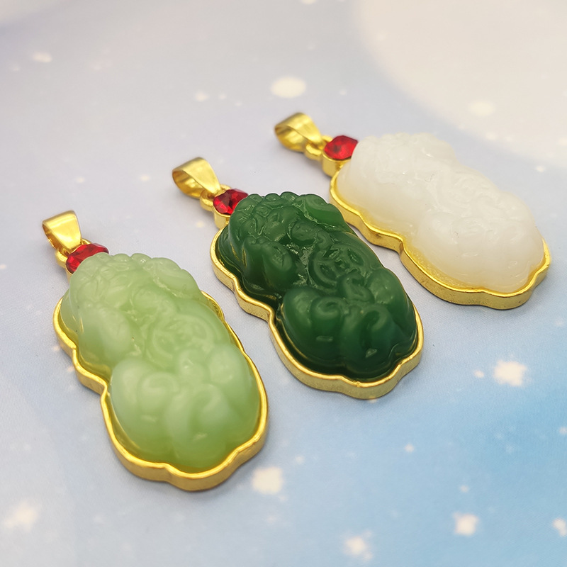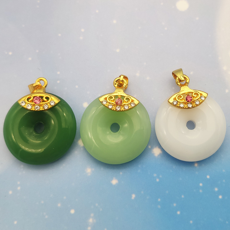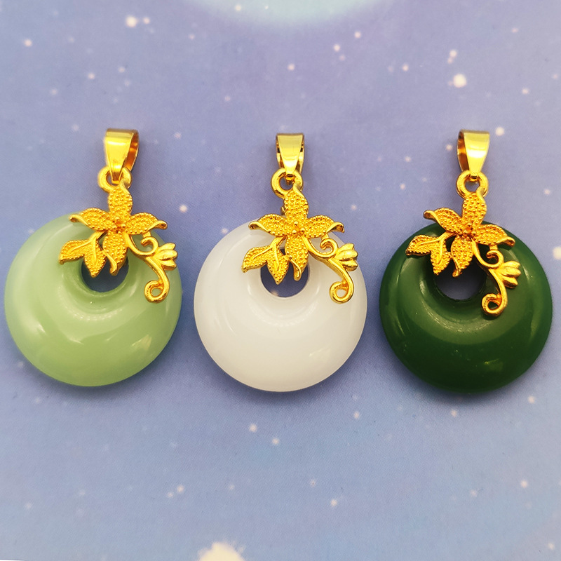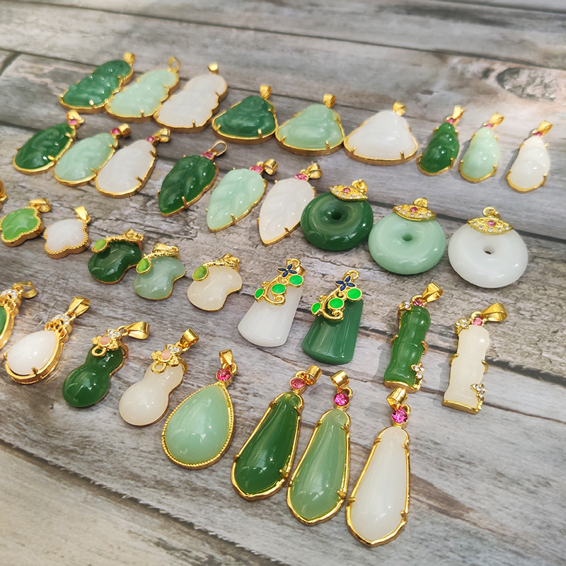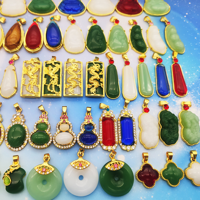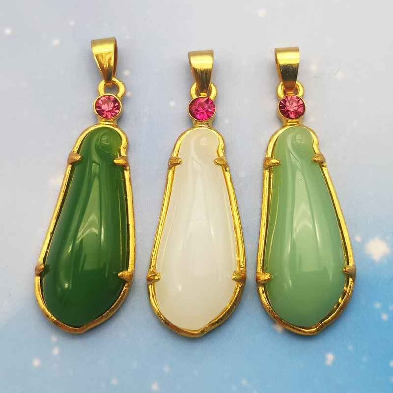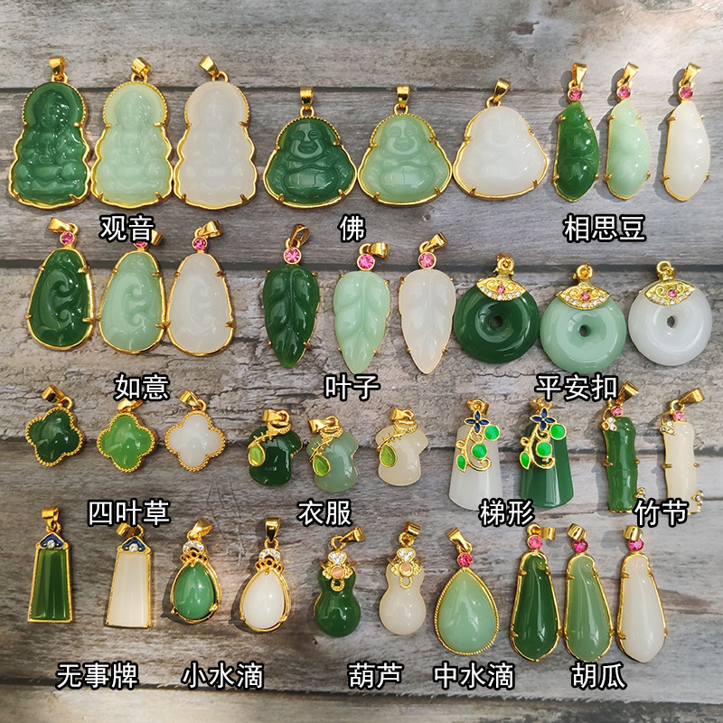 材质:合金边框,电镀仿金,中间人造玉料,水晶玻璃材质