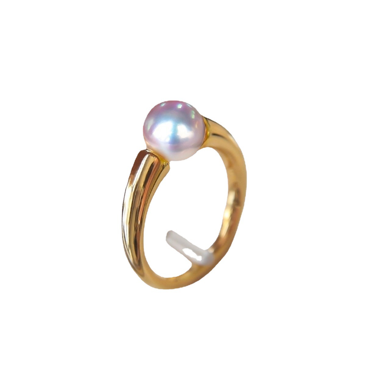New Gap Ring Wall Pearl Opening Ring Women's Retro Style Elegant Goddess Ring Gold-plated Fashion Joker