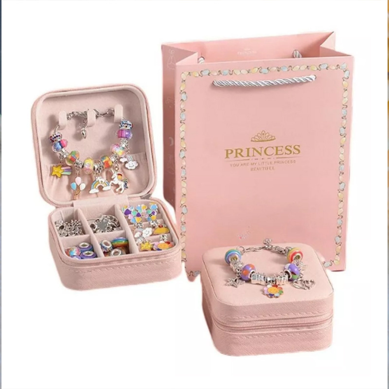 Colour: Sakura pink + ocean blue diy bracelet [double-layer jewelry box + gift bag]