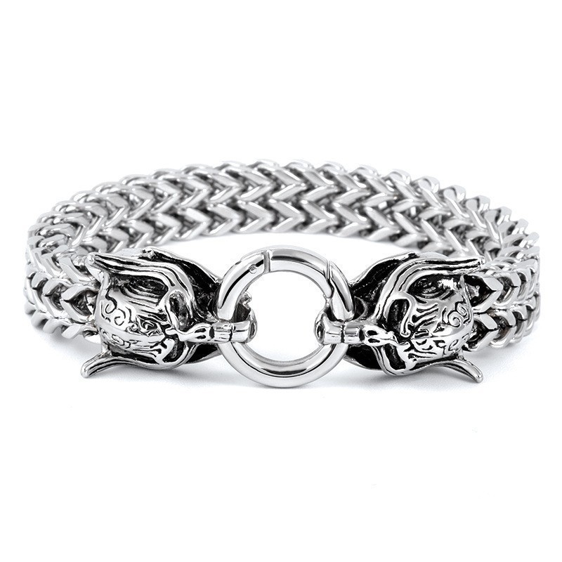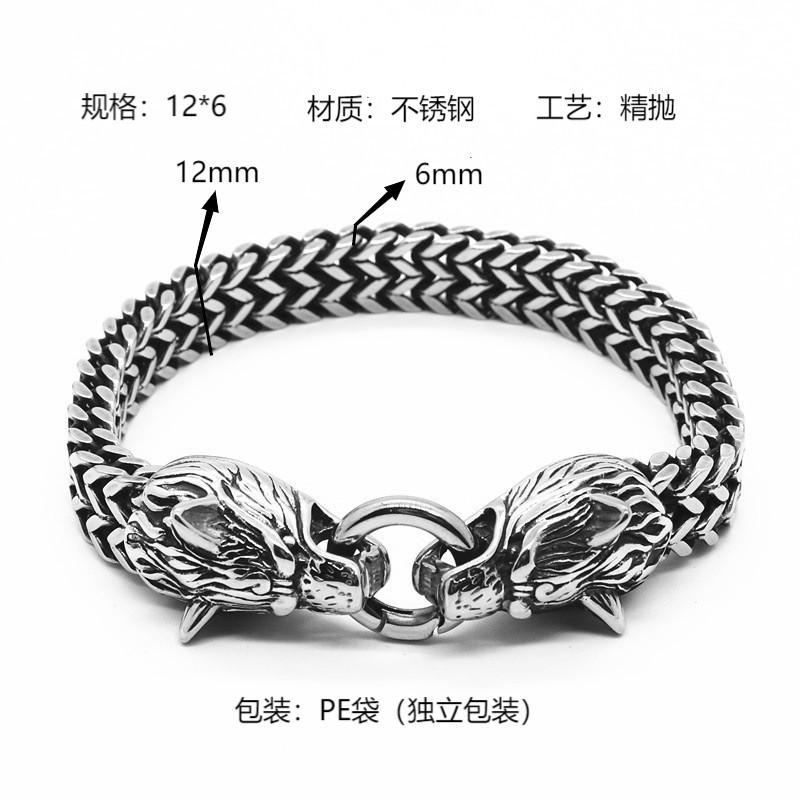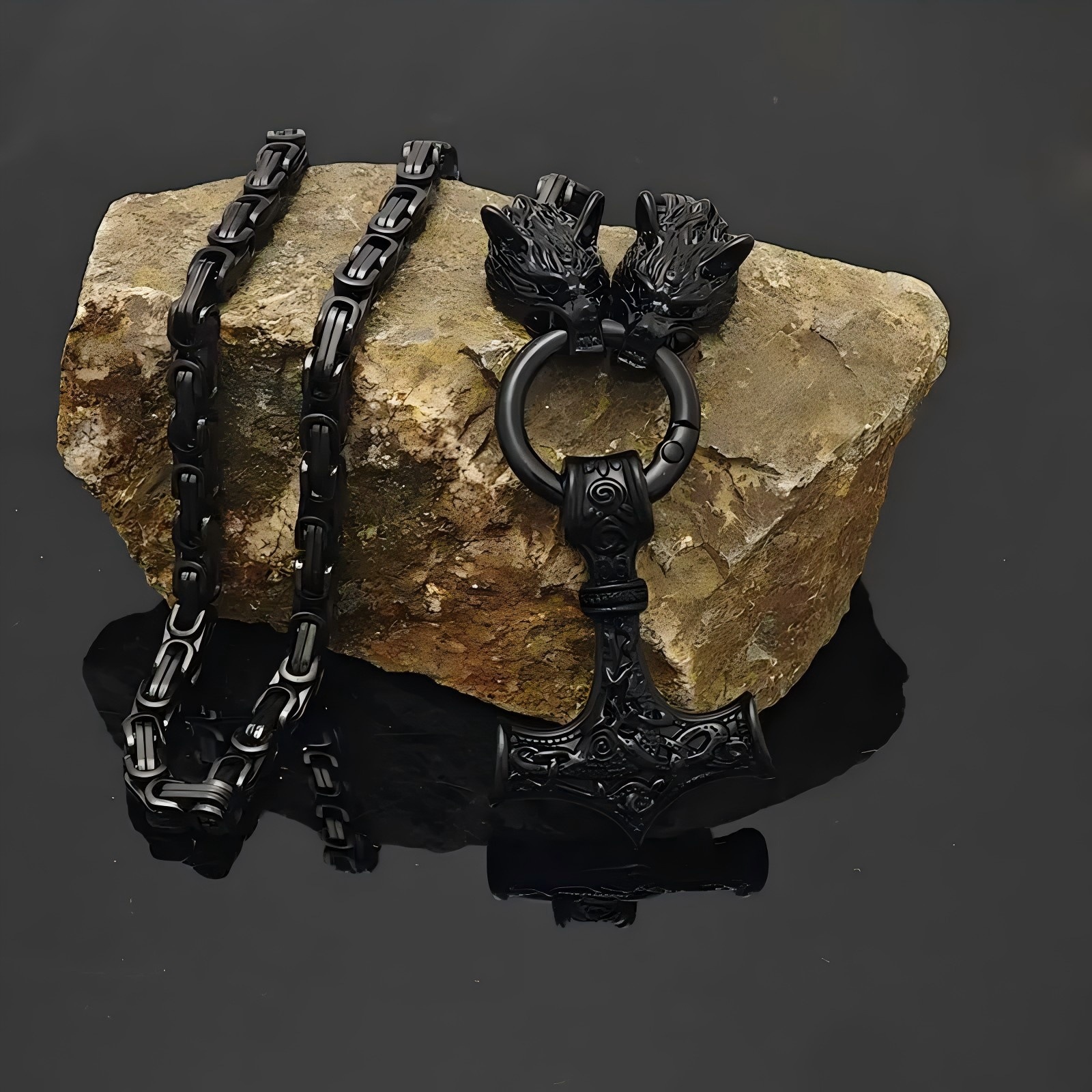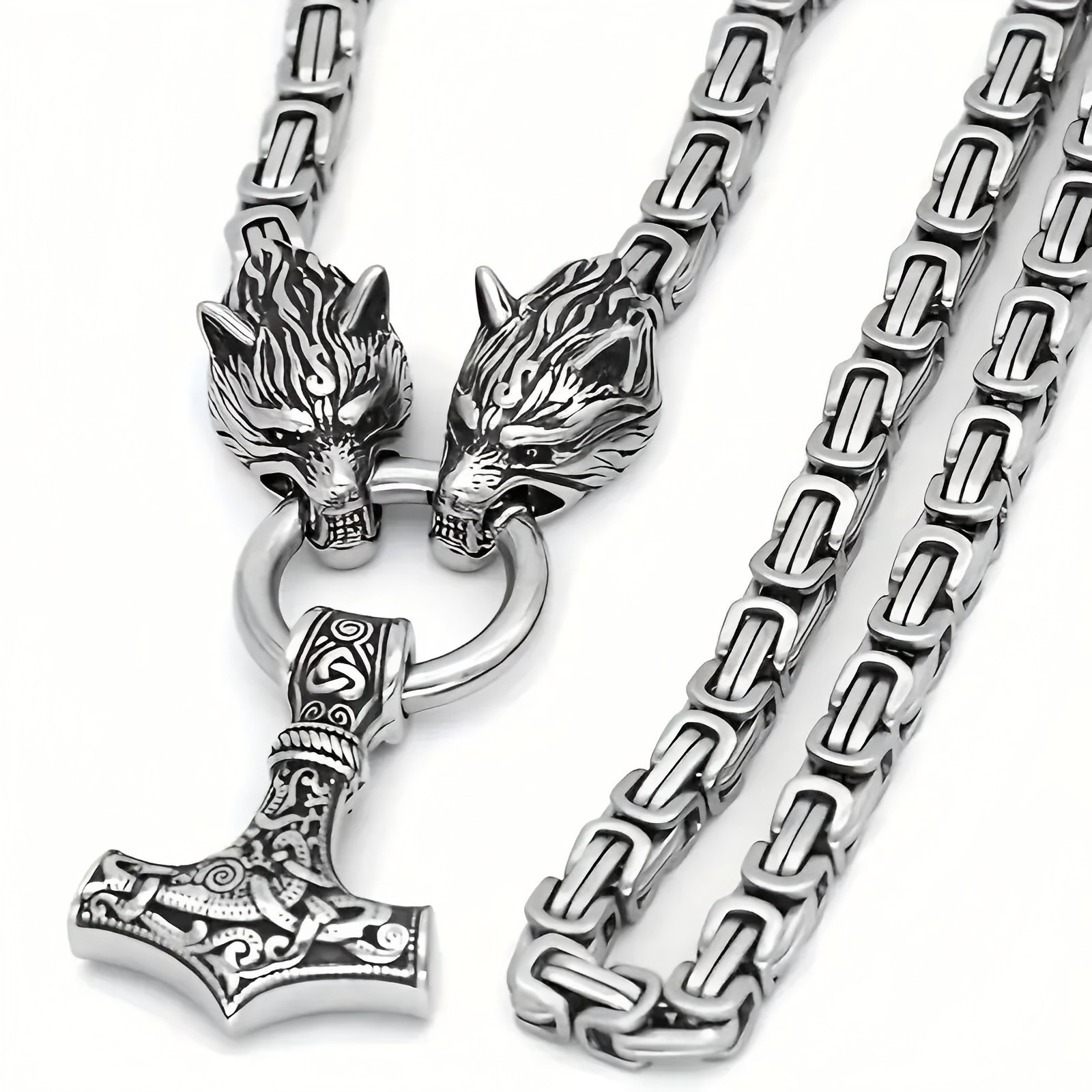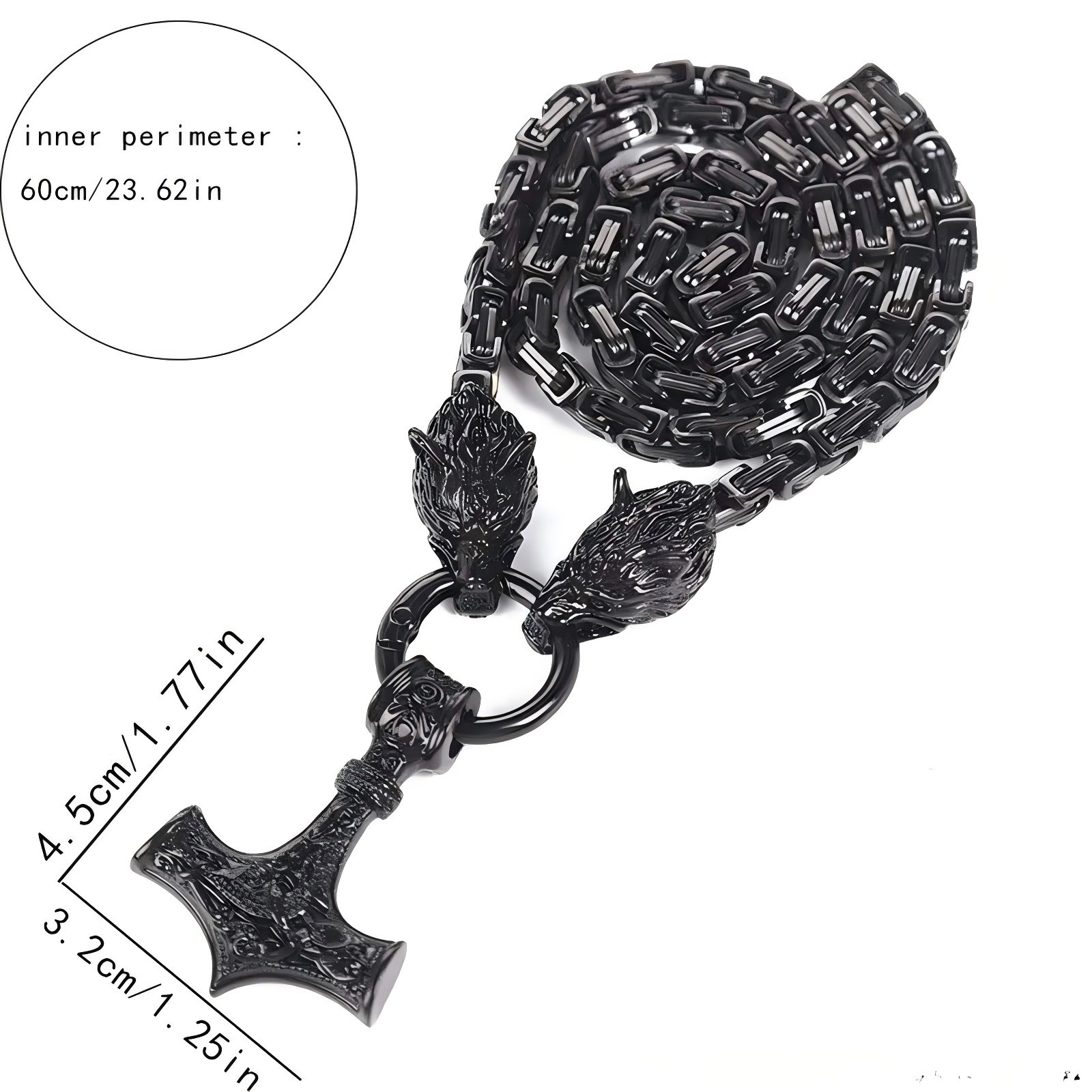Color: Wolf Head Thor Hammer Pendant-Steel Color