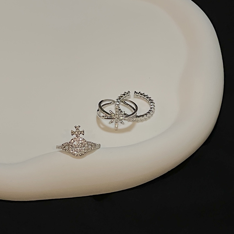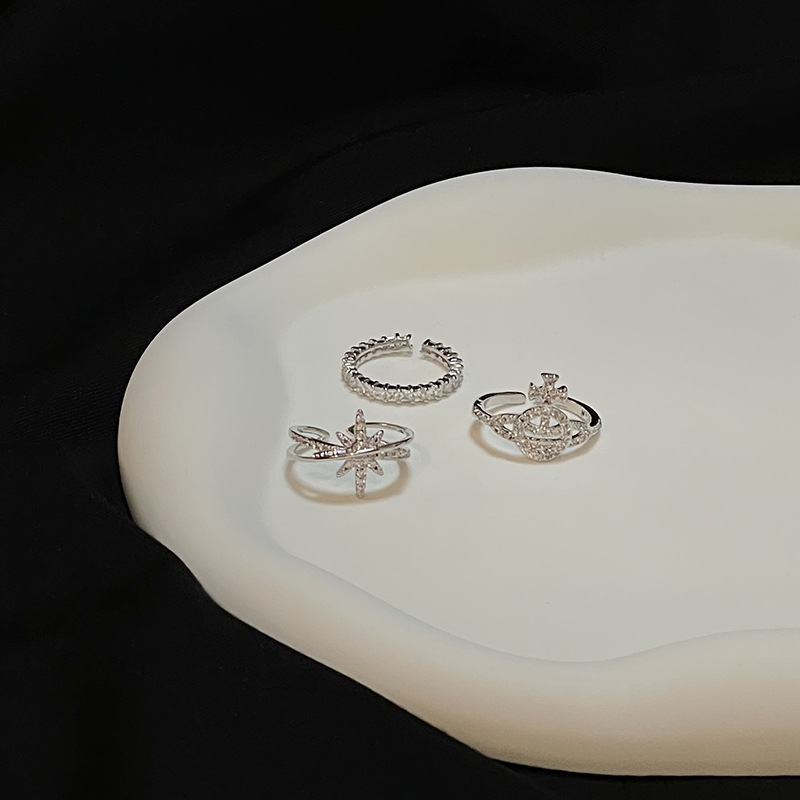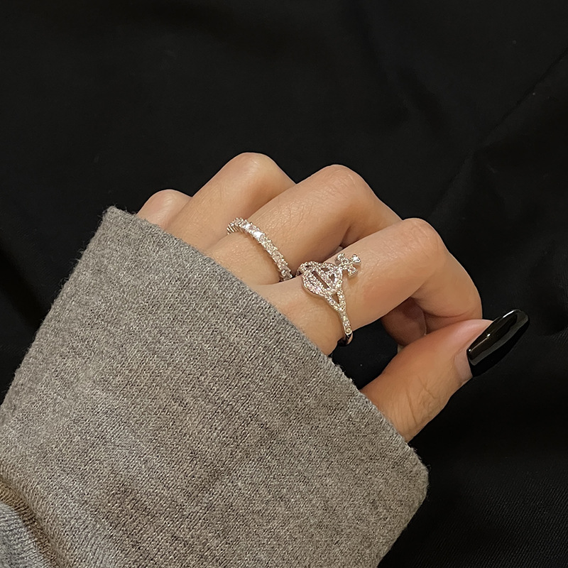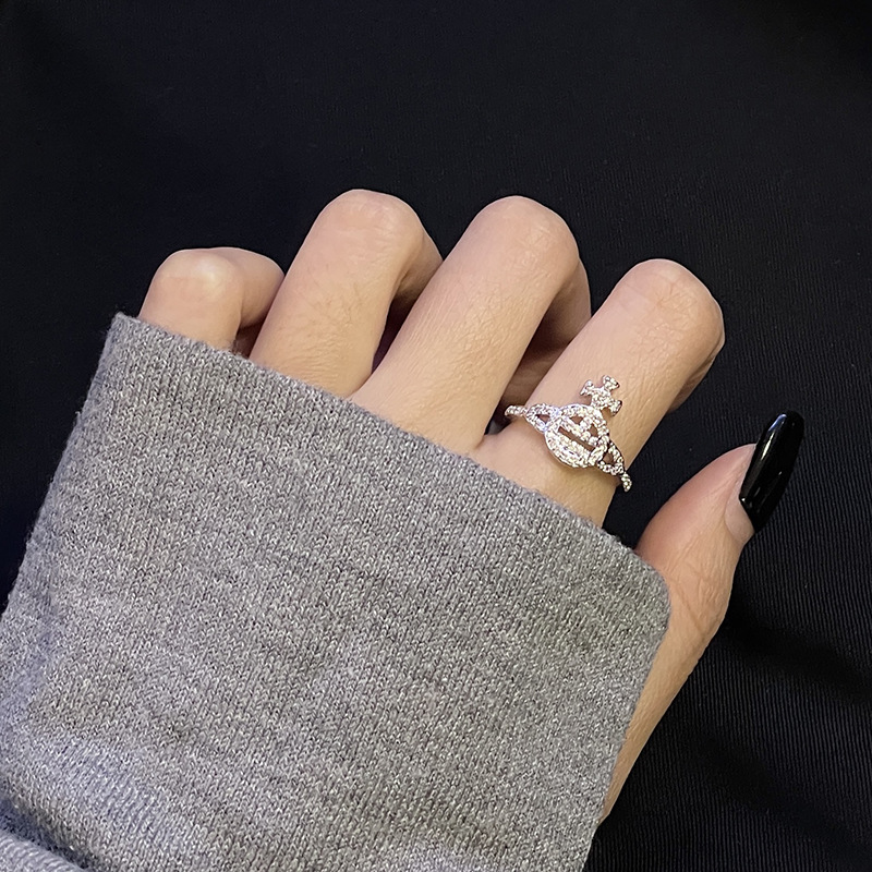 Niche Design Rice Character Saturn Planet Full Diamond Zircon Open Ring ins Cold Wind Women's Advanced Sense Finger Ring