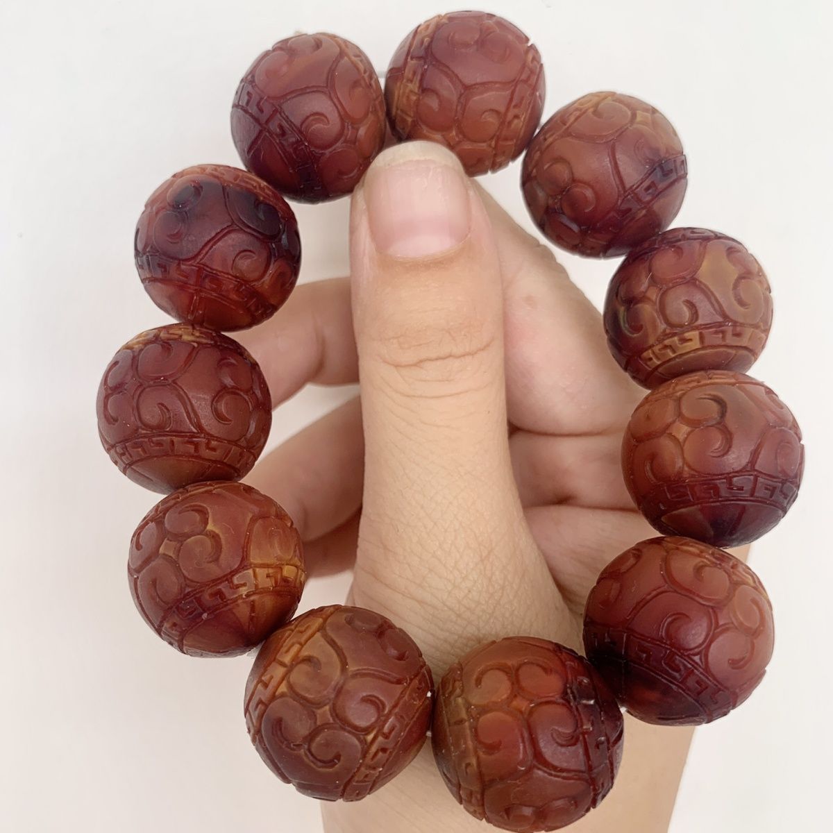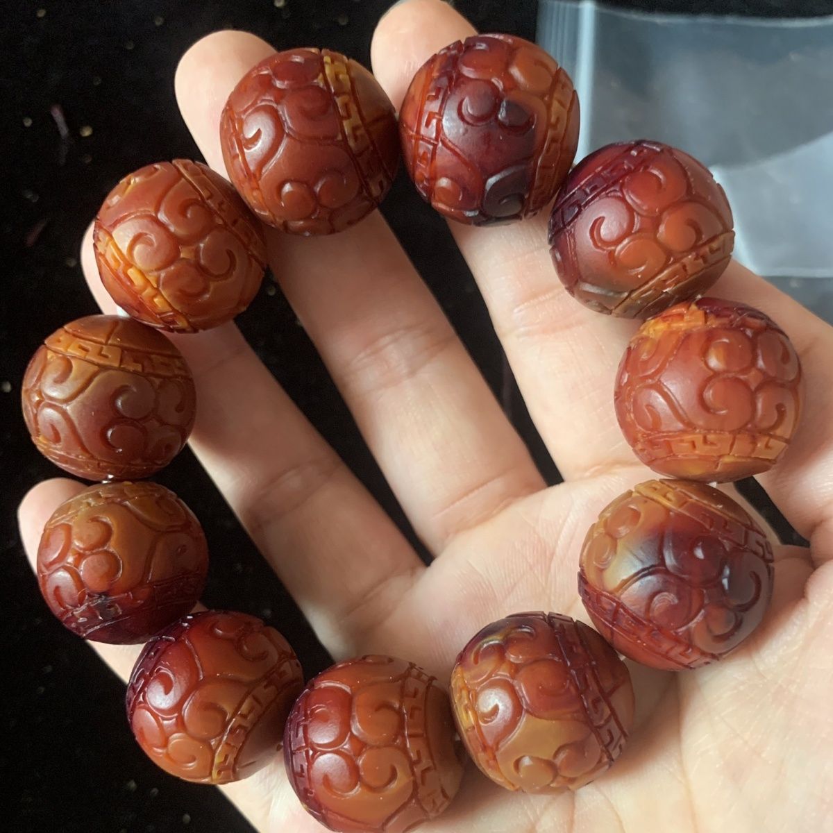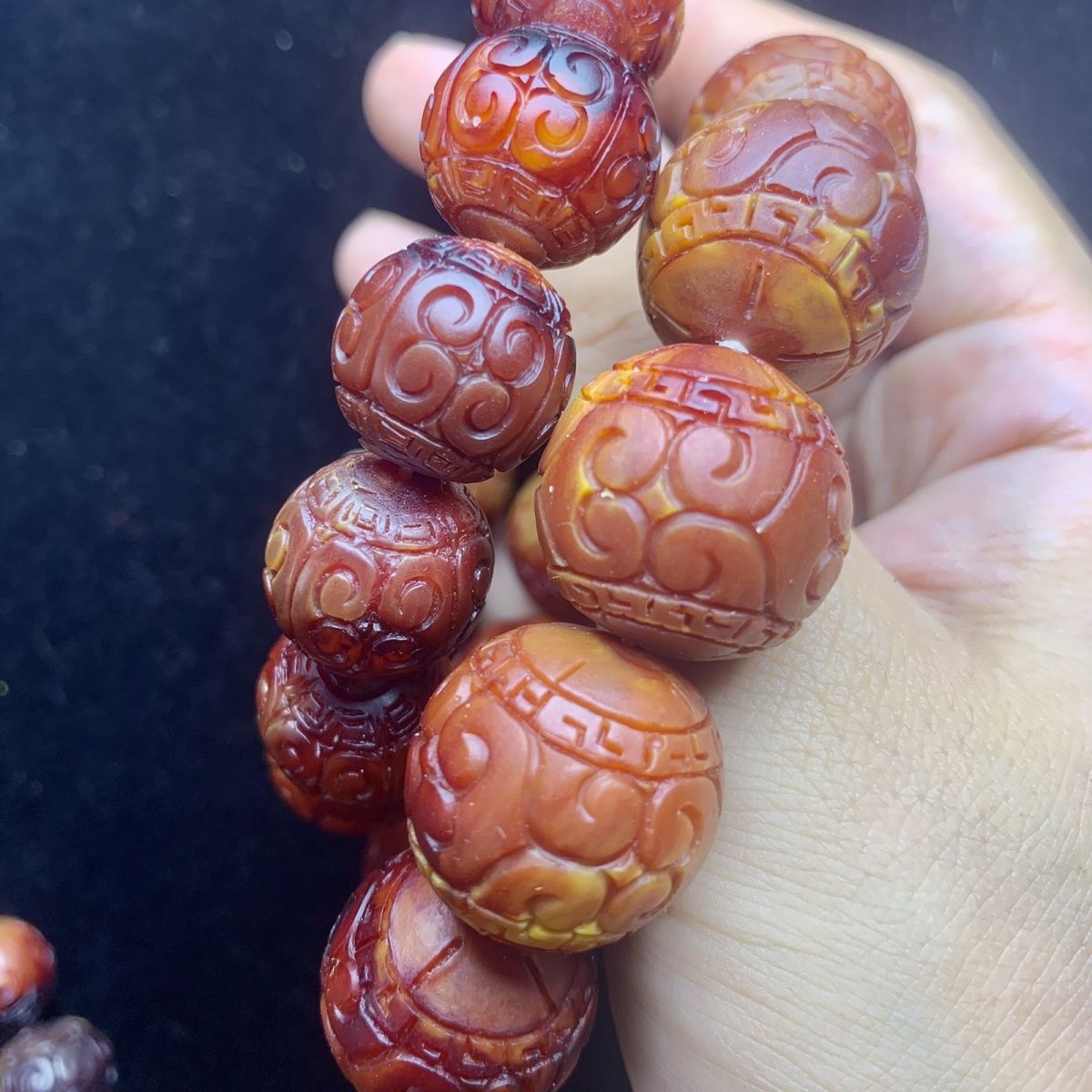 Long Xianxiang back pattern beads Wenwan Buddha beads bracelet with clear lines father and son birthday gift bracelet other carving