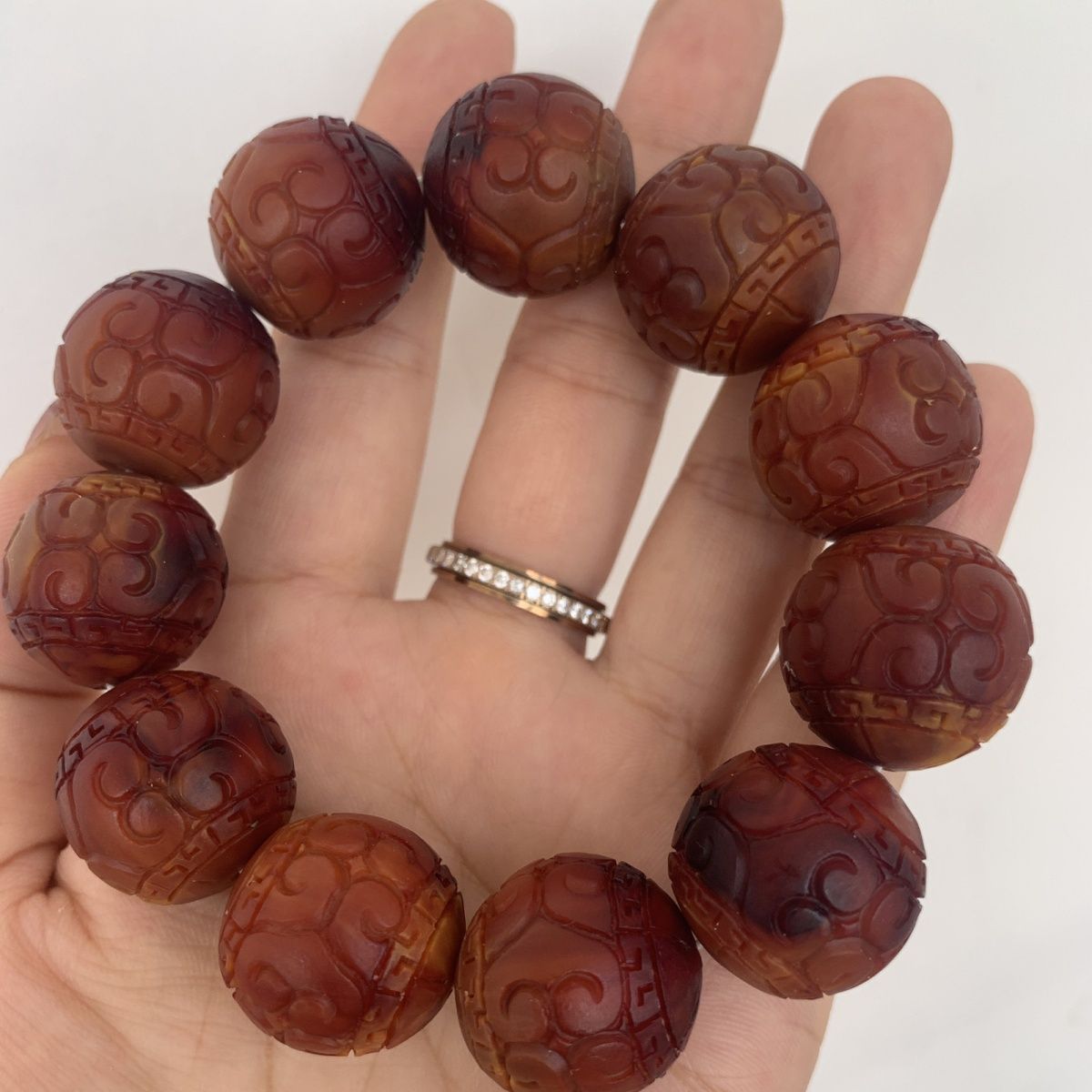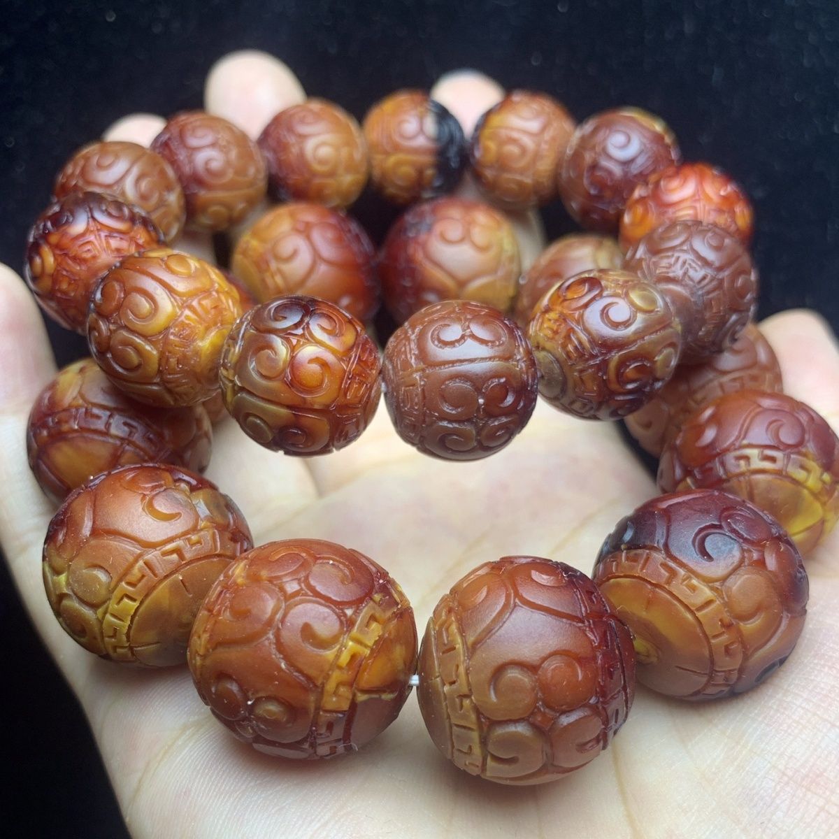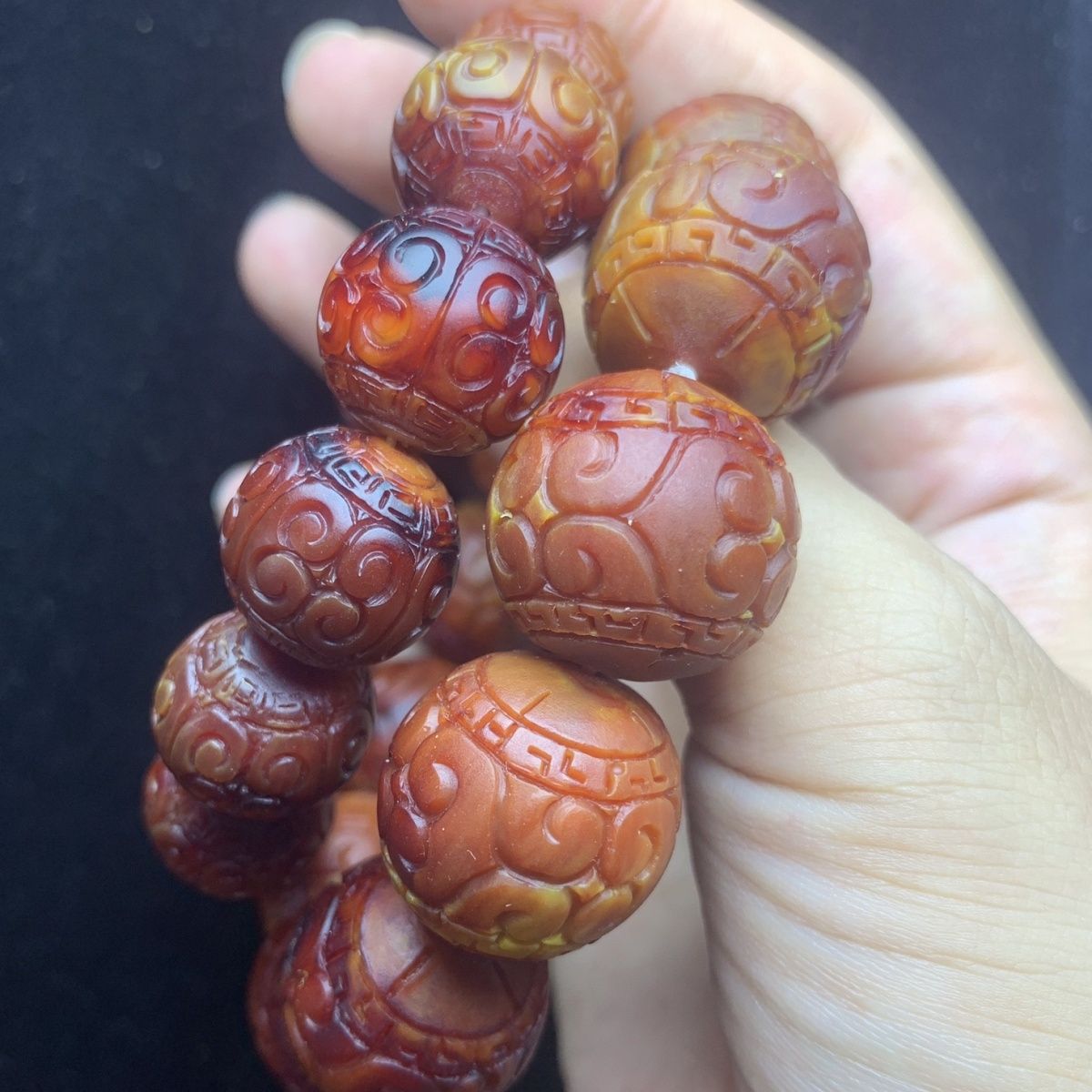 Long Xianxiang back pattern beads Wenwan Buddha beads bracelet with clear lines father and son birthday gift bracelet other carving