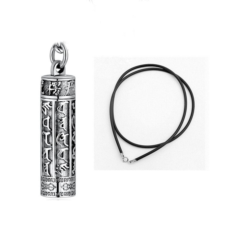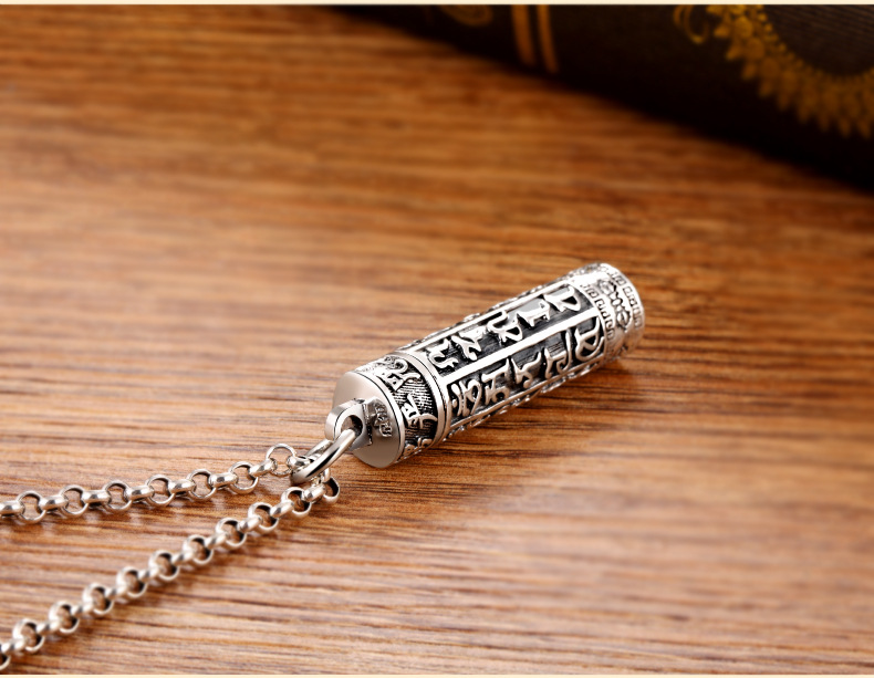S925 Sterling Silver Pendant Trendy Six-character Truth Necklace Gawu Box Personality Men's Silver Pendant Trendy Simple Fashion