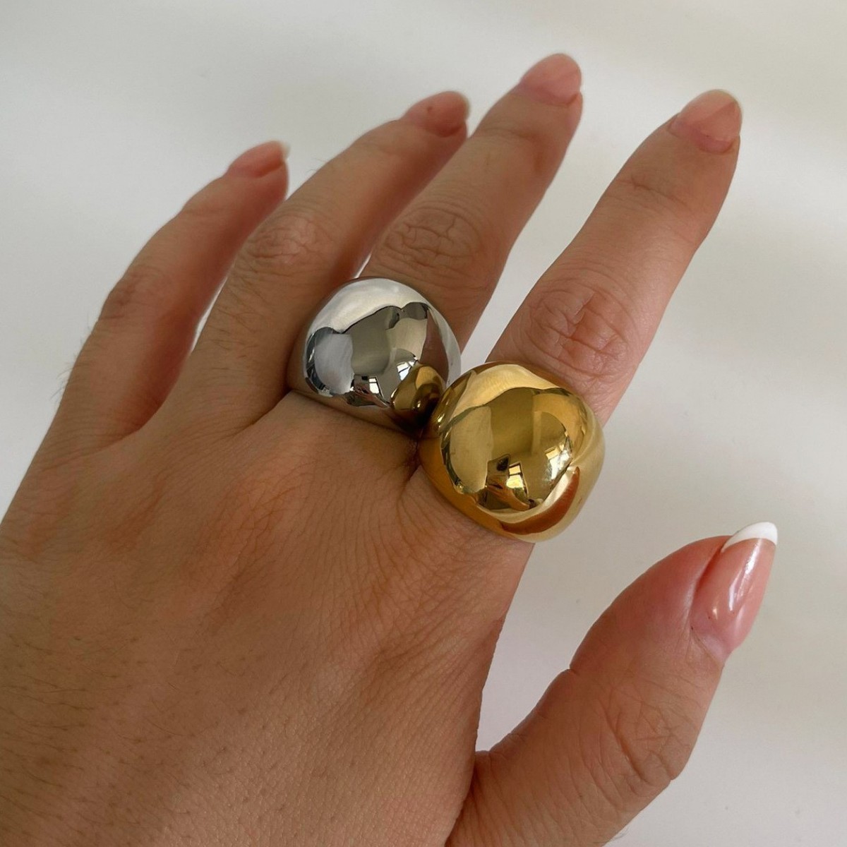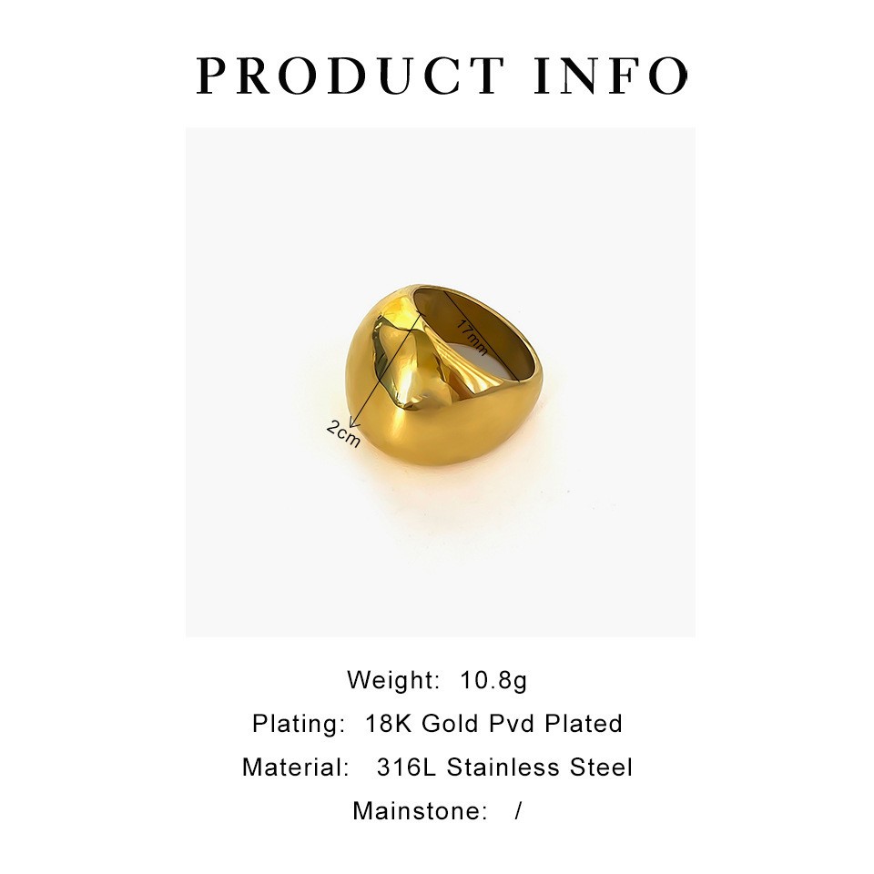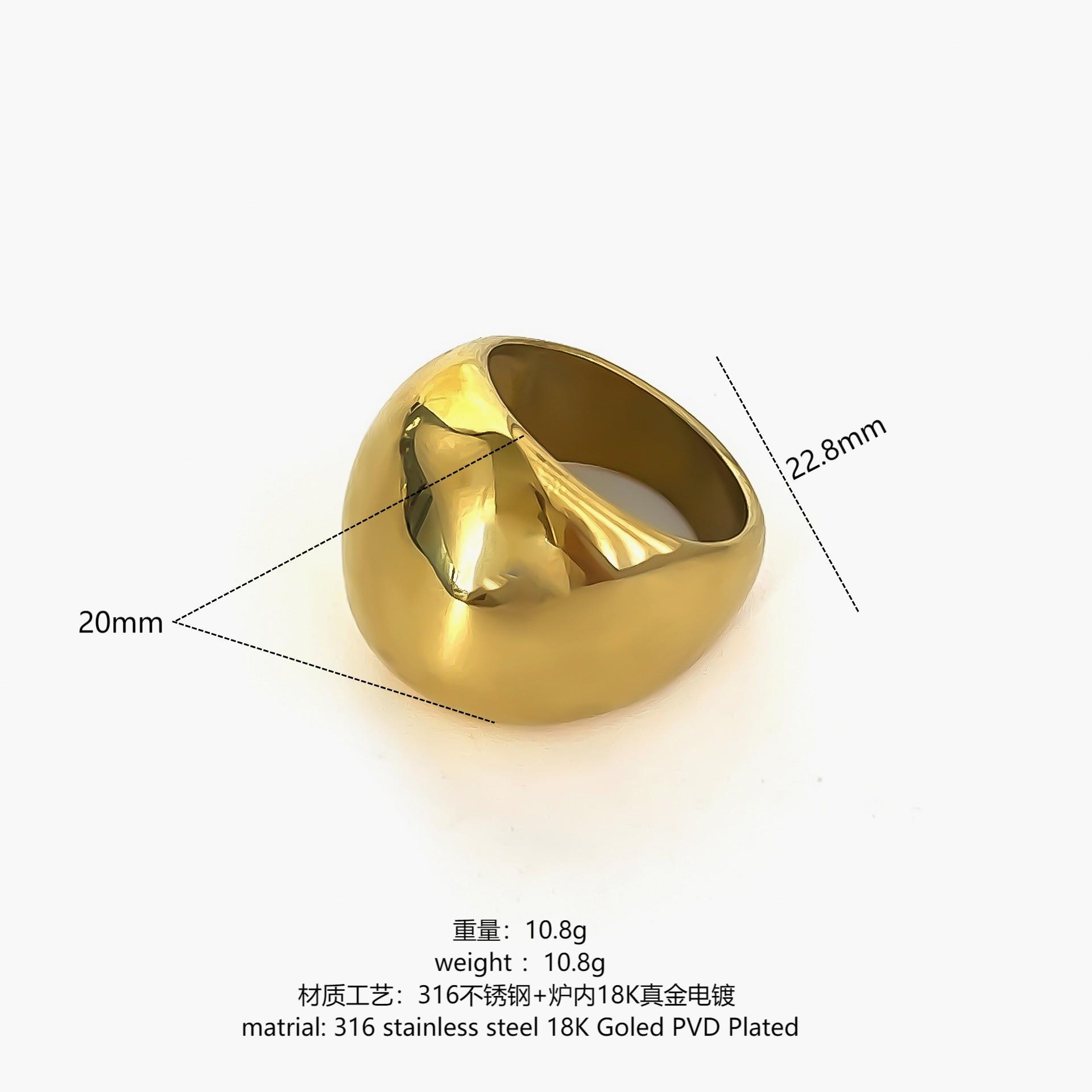 Fashionable Cold Style Titanium Steel Smooth Large Wide Simple Asymmetrical Ring 18K Real Gold Furnace Electroplated Ring for Women