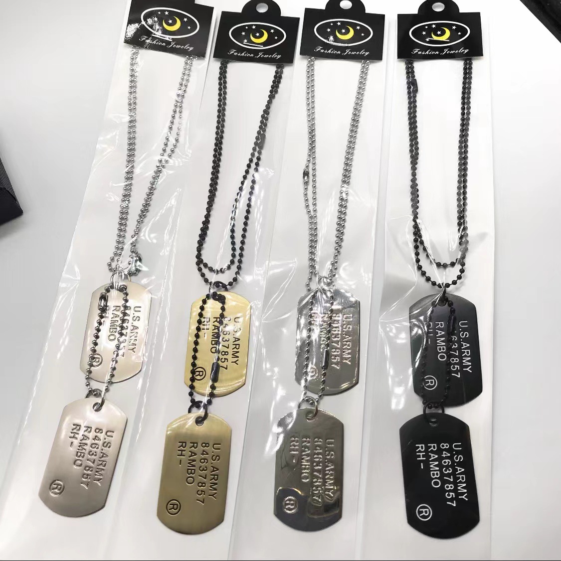 Foreign trade European and American military tag dog tag necklace sweater chain four rows American soldiers double tag hip hop trendy long