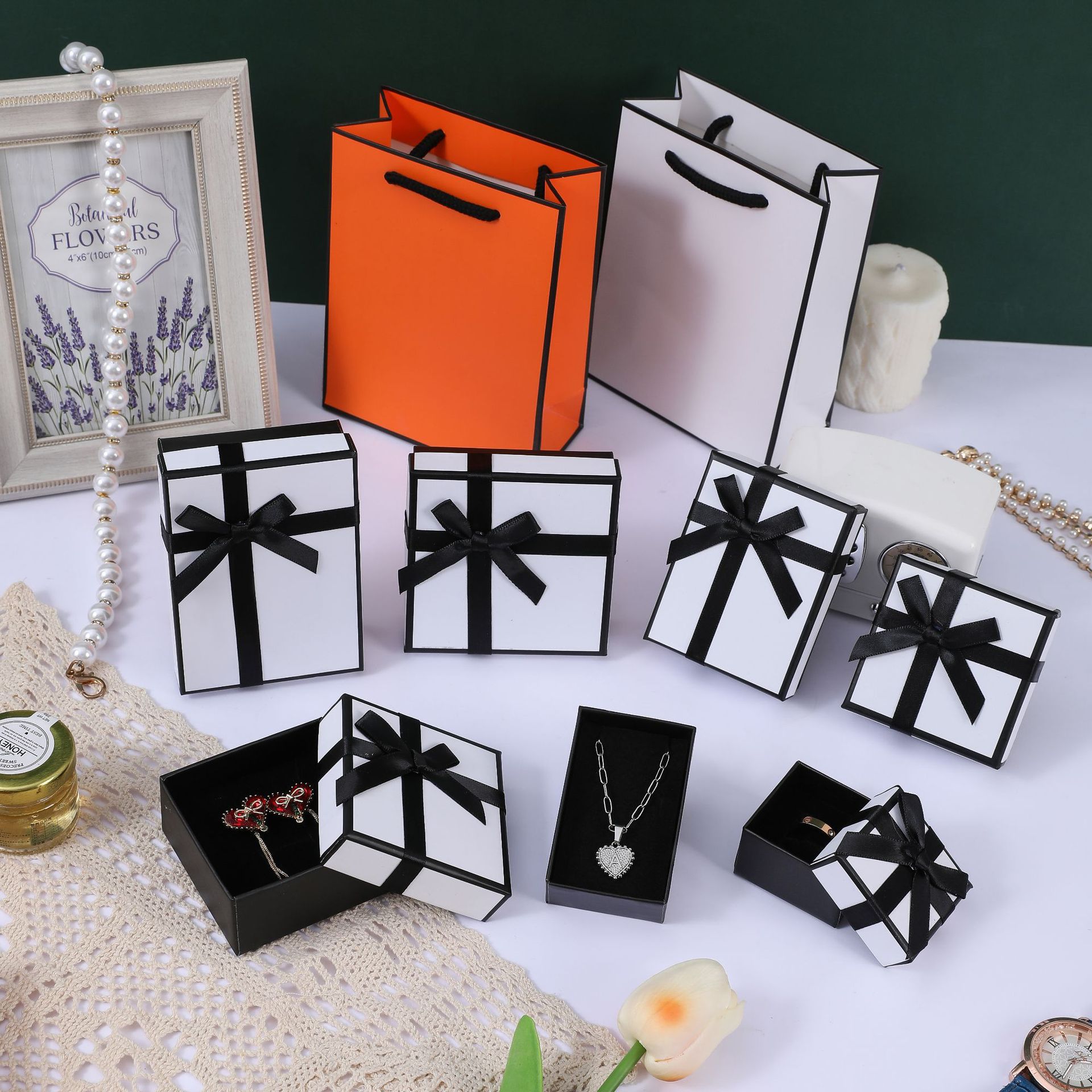 Specification model: Orange black frame bow; 7*9*3 (large pendant necklace box contains sponge)