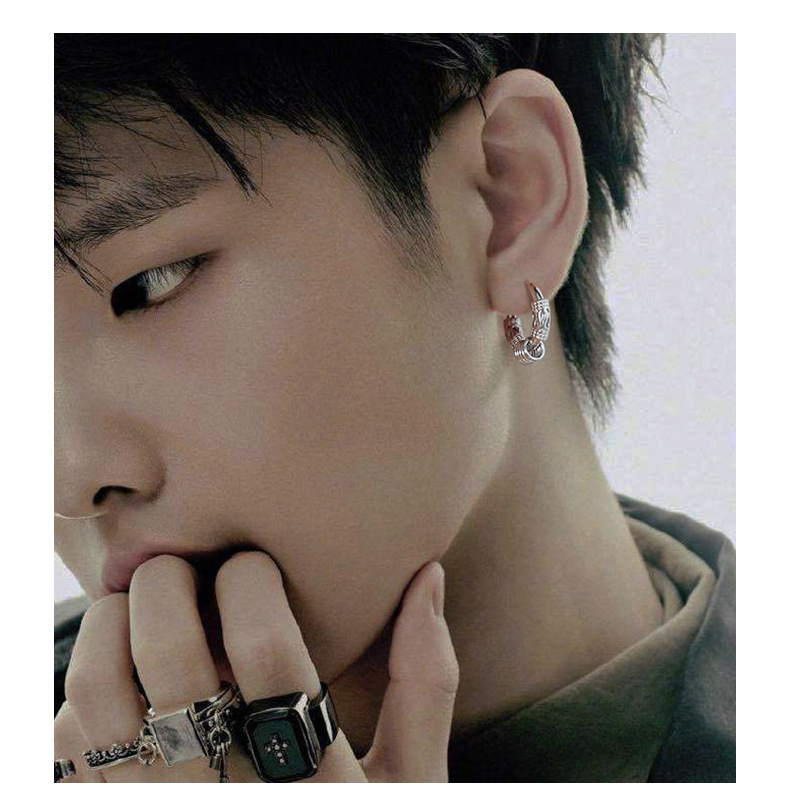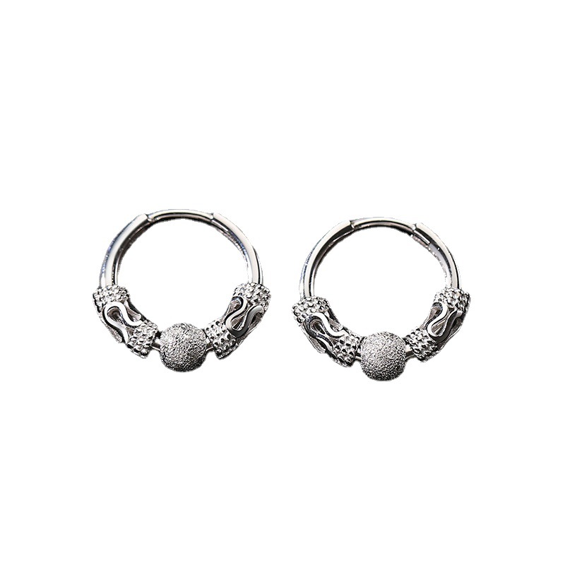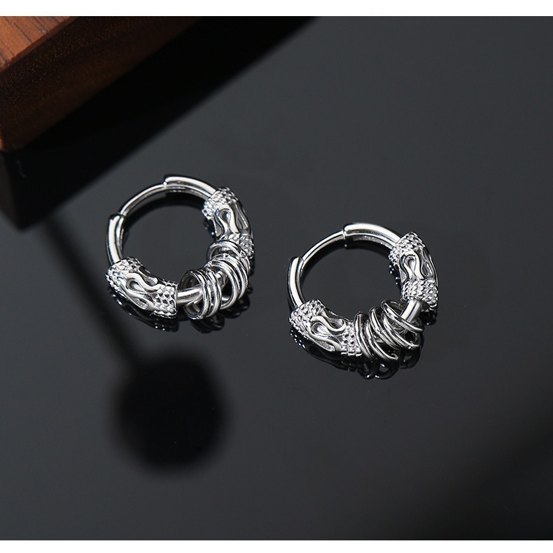 Silver-plated ear jewelry men's trendy earrings trend personality men's single simple retro circle ear buckle a generation of hair
