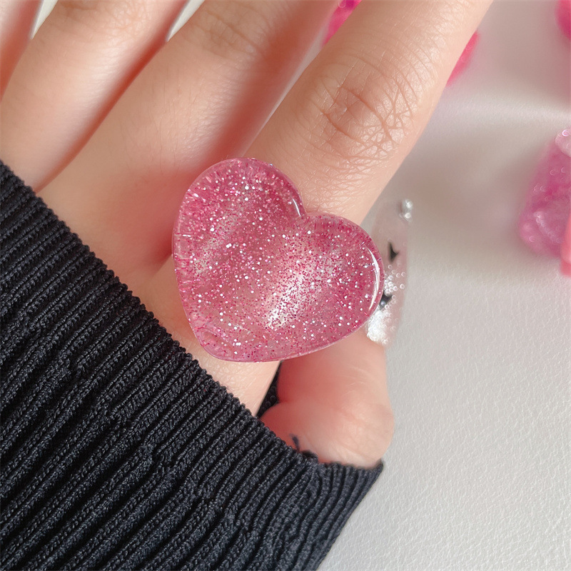 Japanese and Korean New Style Glitter Bear Love Resin Ring Sweet Cute Girl Style ins Style Acrylic Ring for Women
