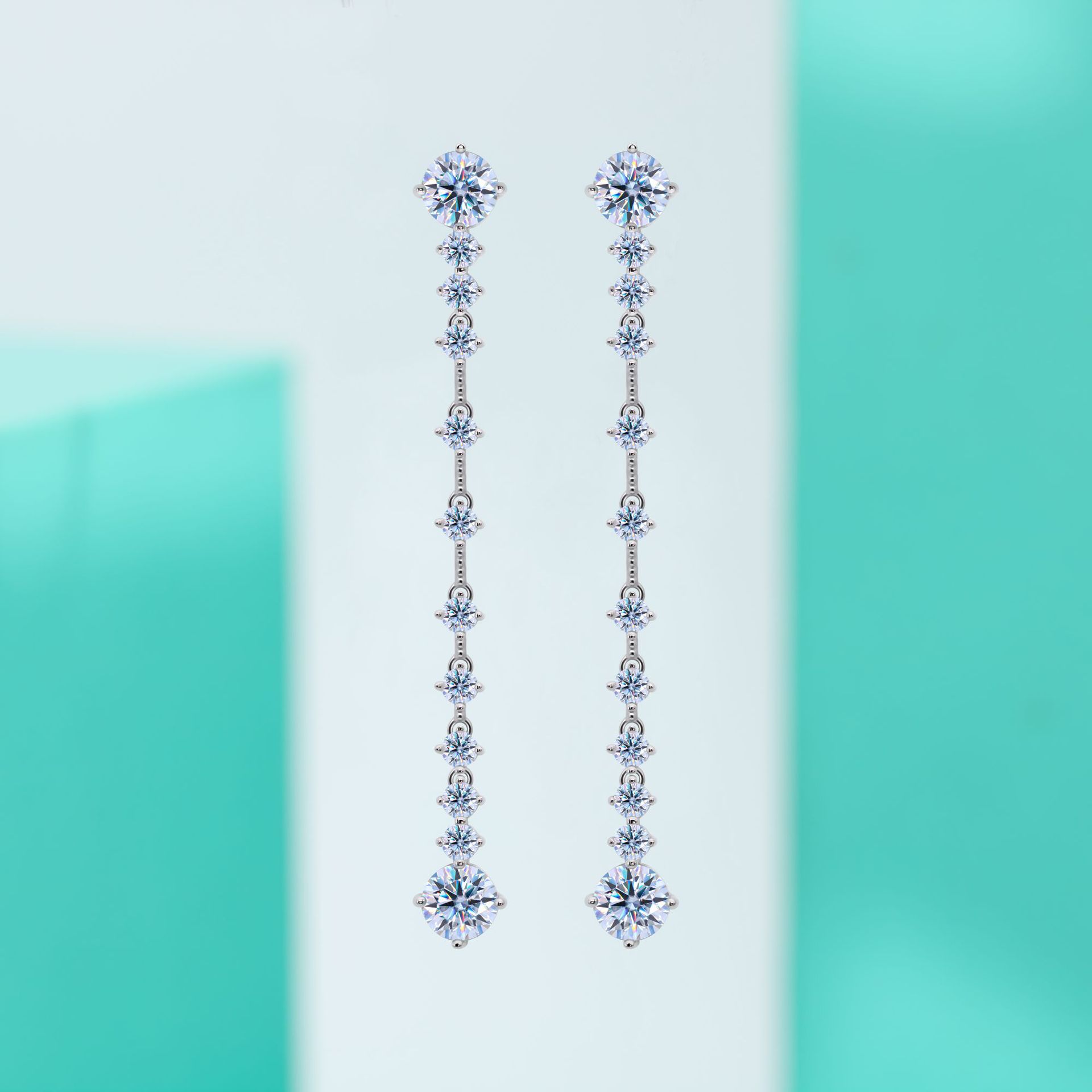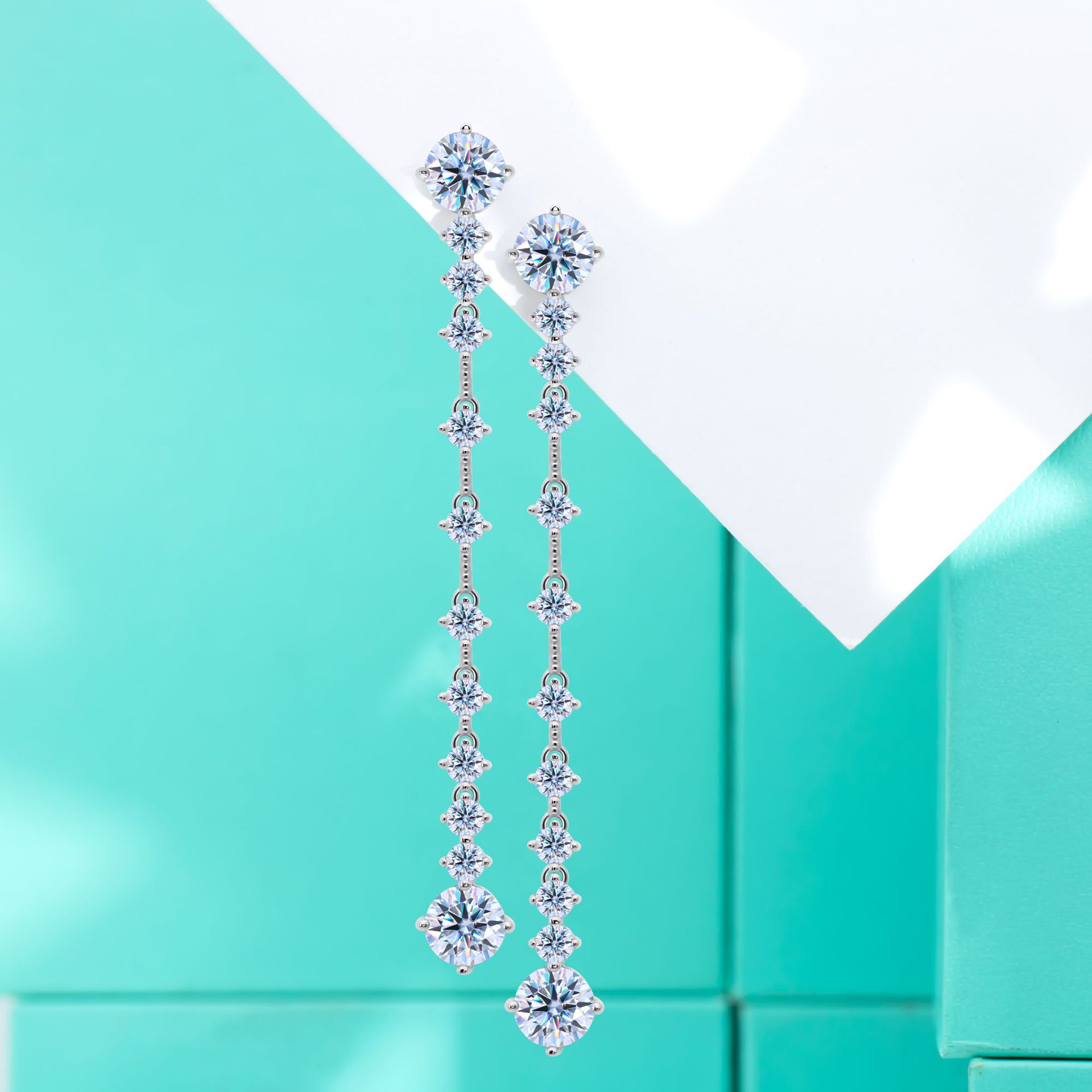 Cross-border moissanite earrings silver needle temperament heavy industry long tassel earrings S925 sterling silver ladies earrings earbuckle