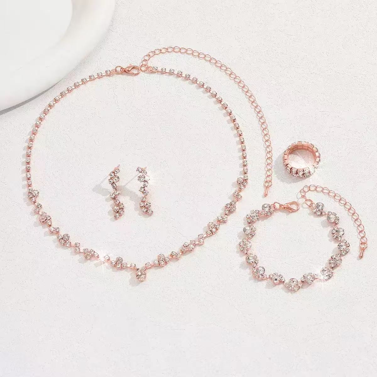 European and American Bridal Claw Chain Jewelry Rhinestone Welding Temperament Diamond Set Earrings Necklace Simple suit N5566