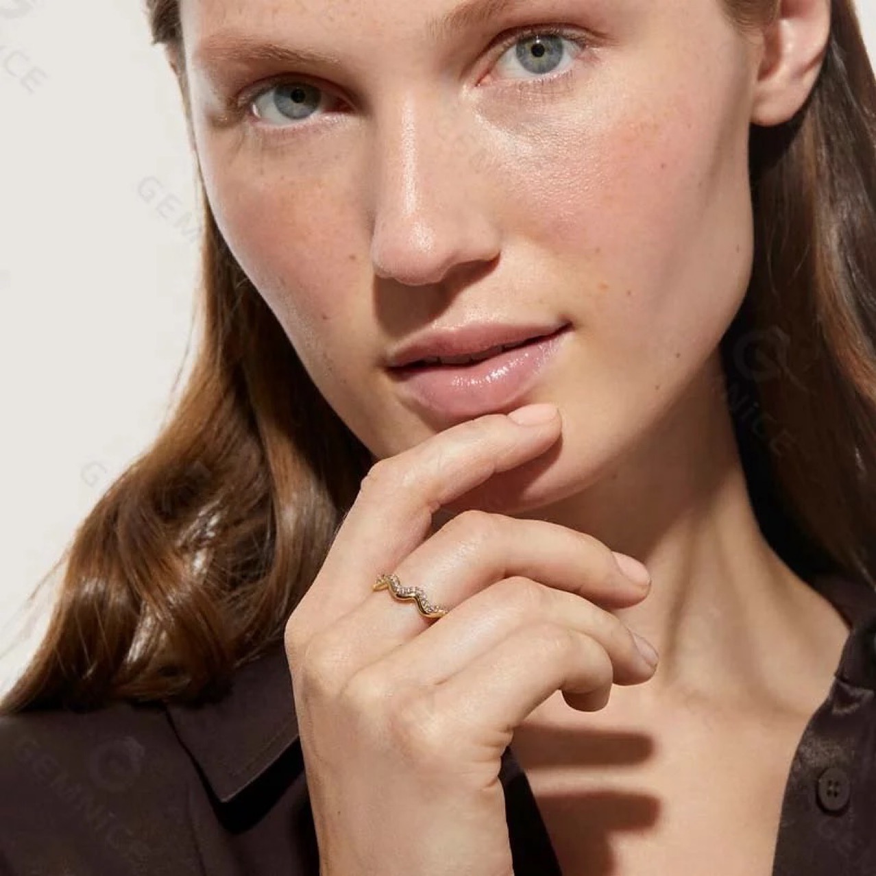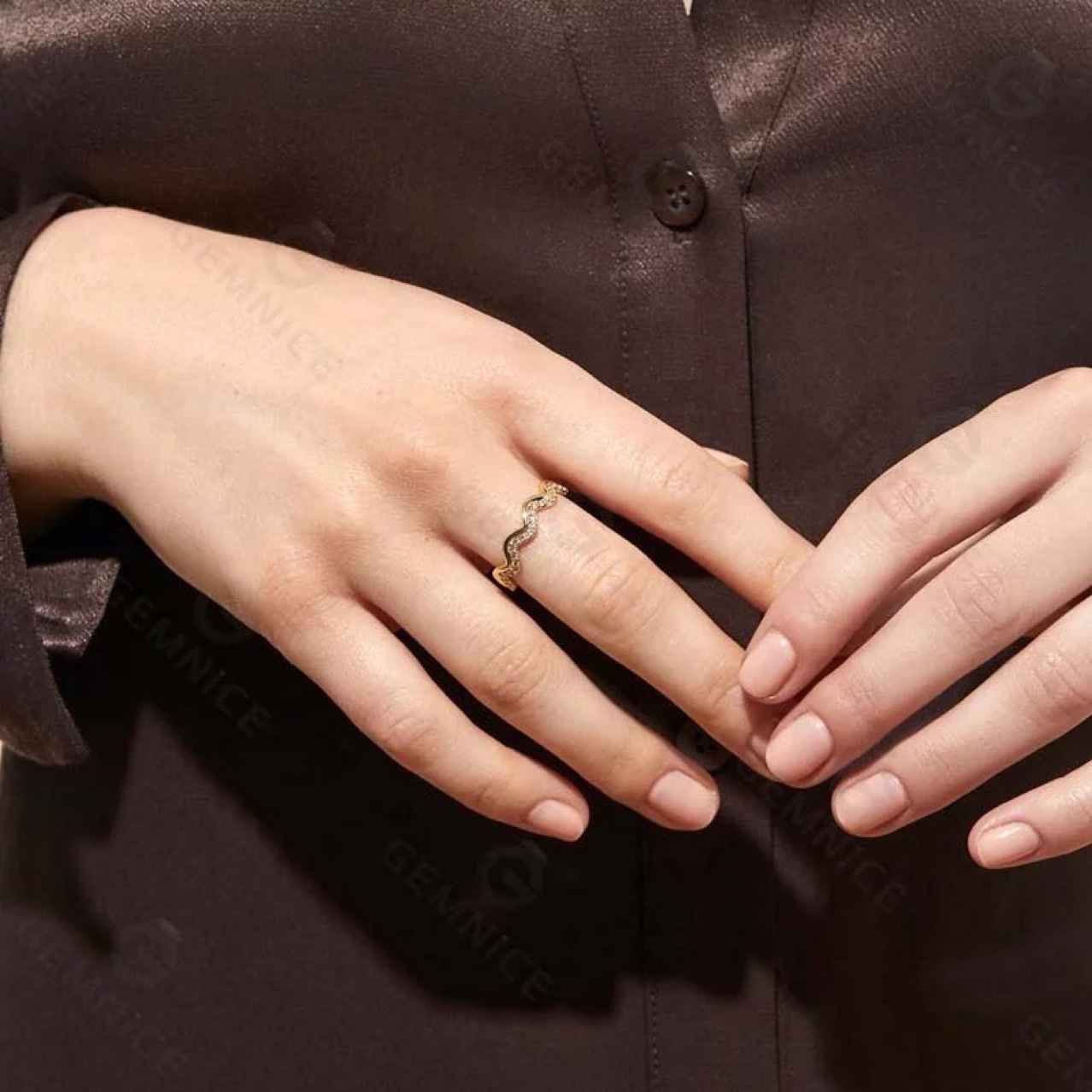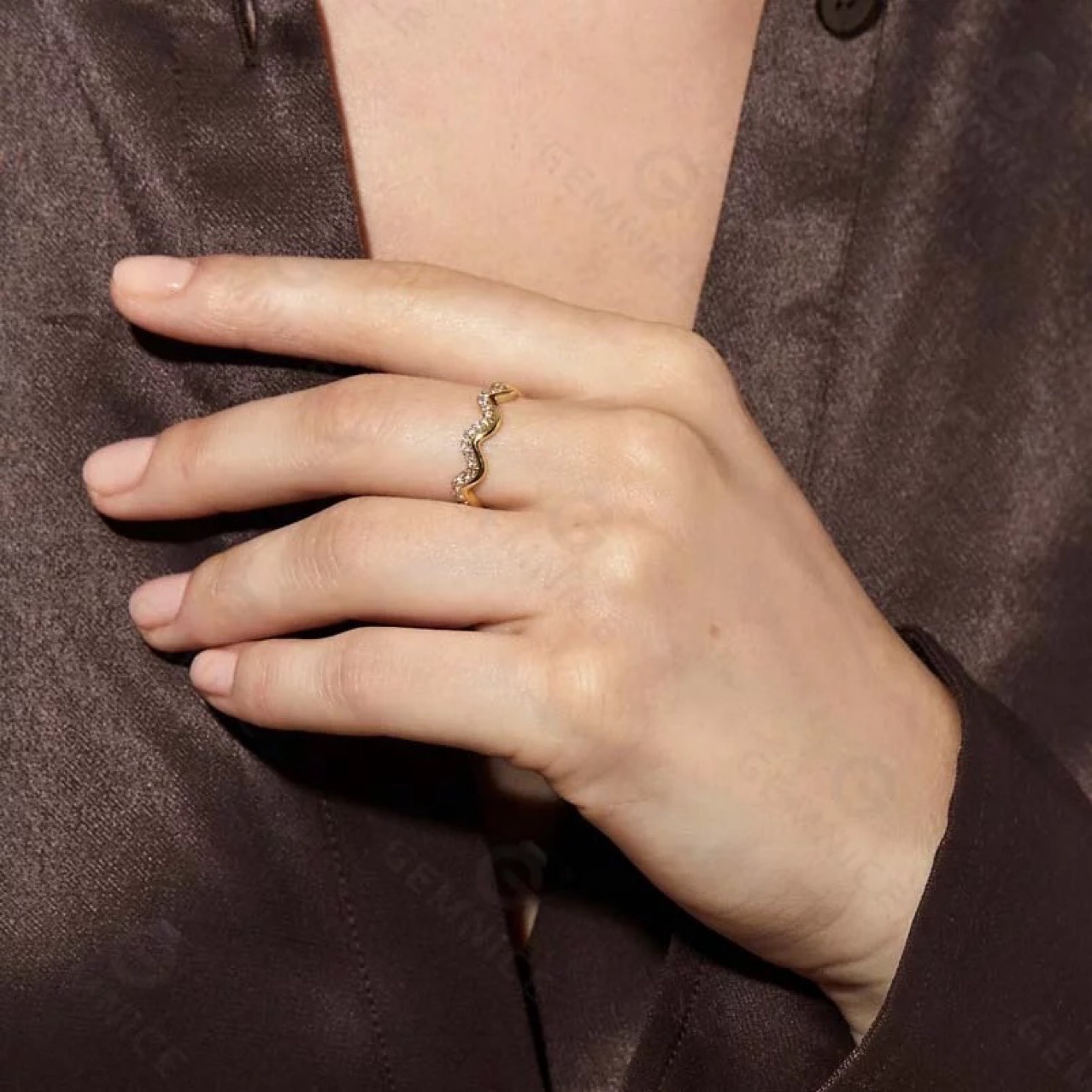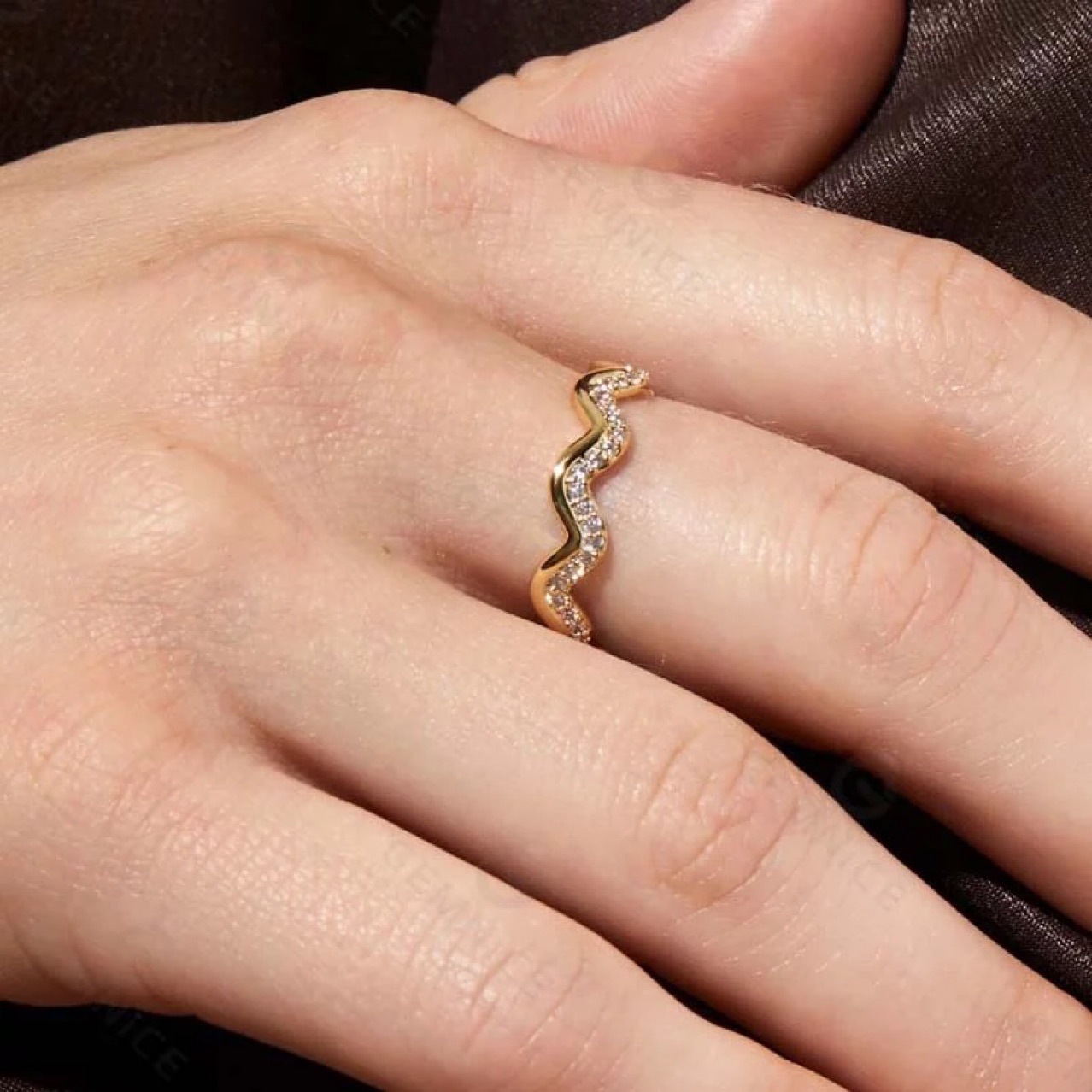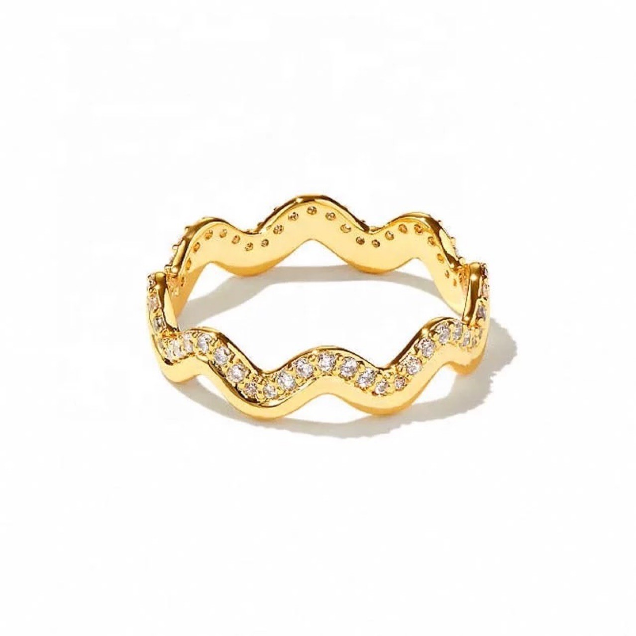 European and American cross-border e-commerce network red INS style light luxury fashion wave Diamond-embedded stainless steel ring female corrugated non-fading