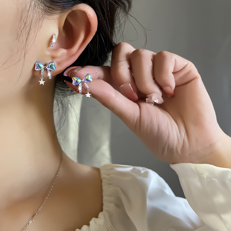 手链:蝴蝶结14MM,星6MM,全长15+3CM延长链/耳环:14*19mm 项链:蝴蝶结14MM、星星6MM、全长约40+5CM延长链可调节 |