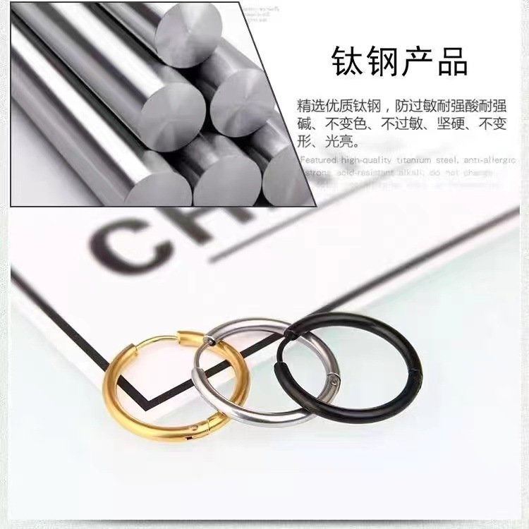 Titanium steel round wire earrings Europe and the United States best selling Joker trendy jewelry men and women ins wind earrings factory direct earrings